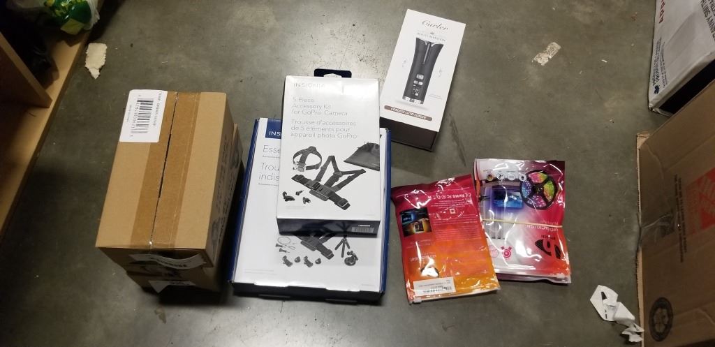 2 GO PRO ACCESSORY KITS, HAIR CURLER, BERELLI LIGHTS AND MICRO USB CORDS