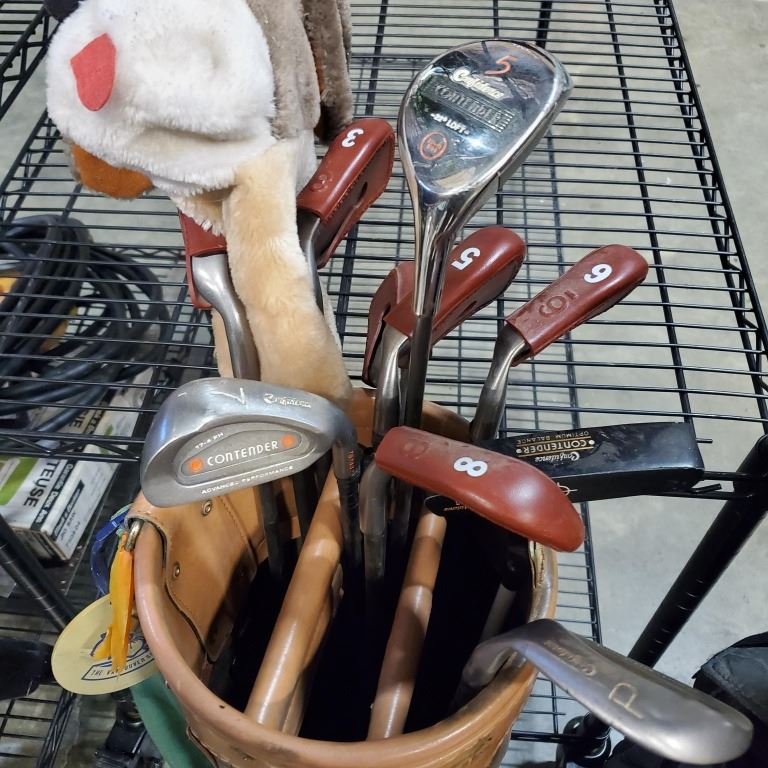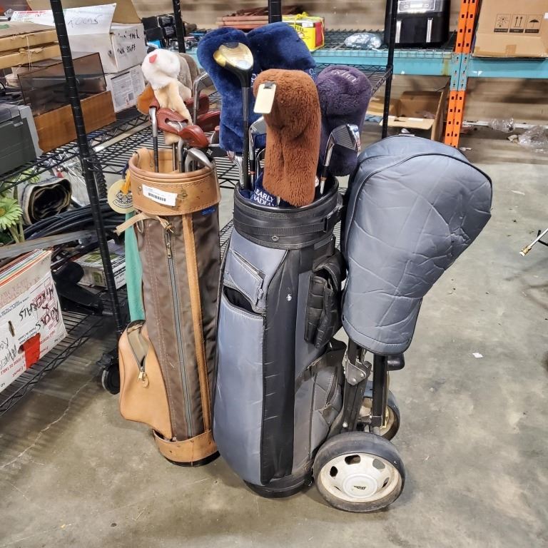 2 GOLF BAGS W/ CUBS AND 1 CART