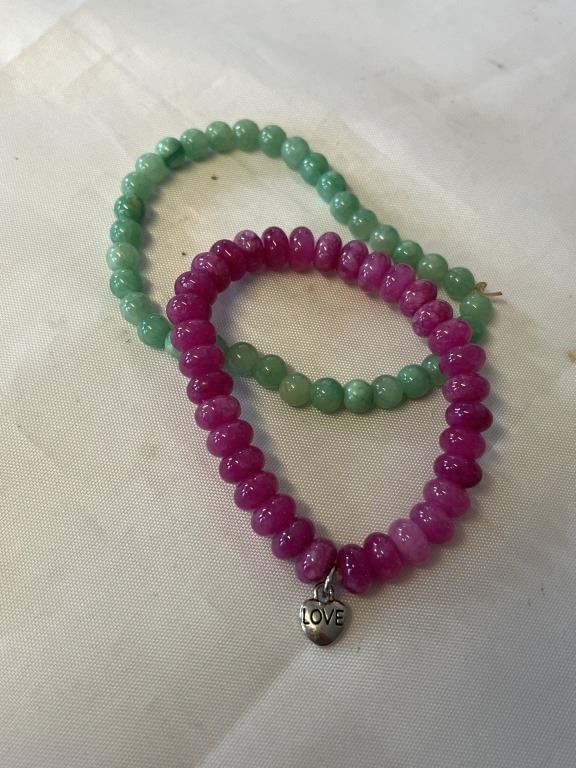 2 GREEN AND RED JADE BEADS STRETCH BRACELETS