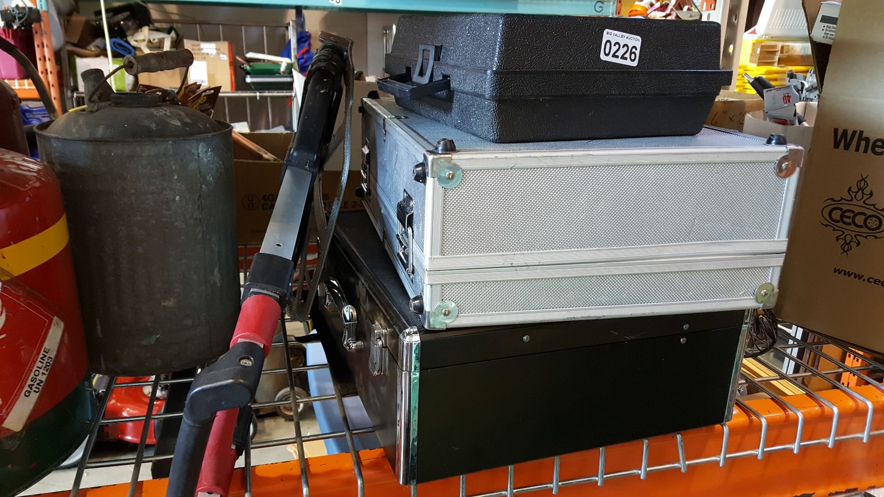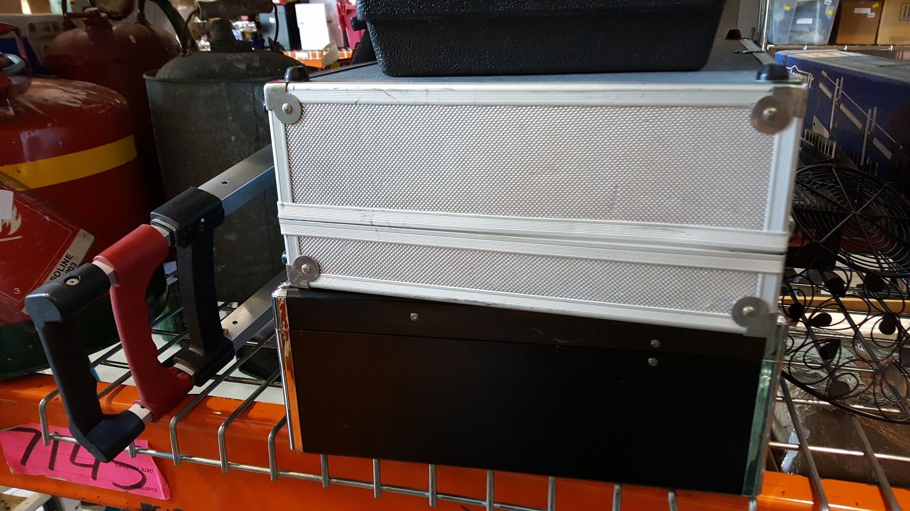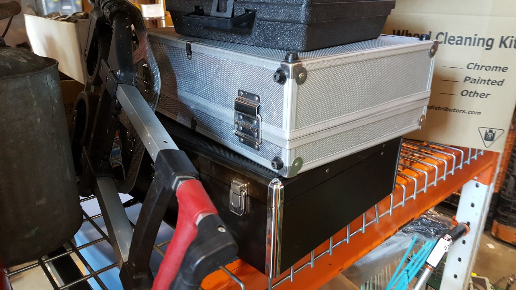 2 HARD CASES, TOOL CASE, AND FOLDING DOLLY