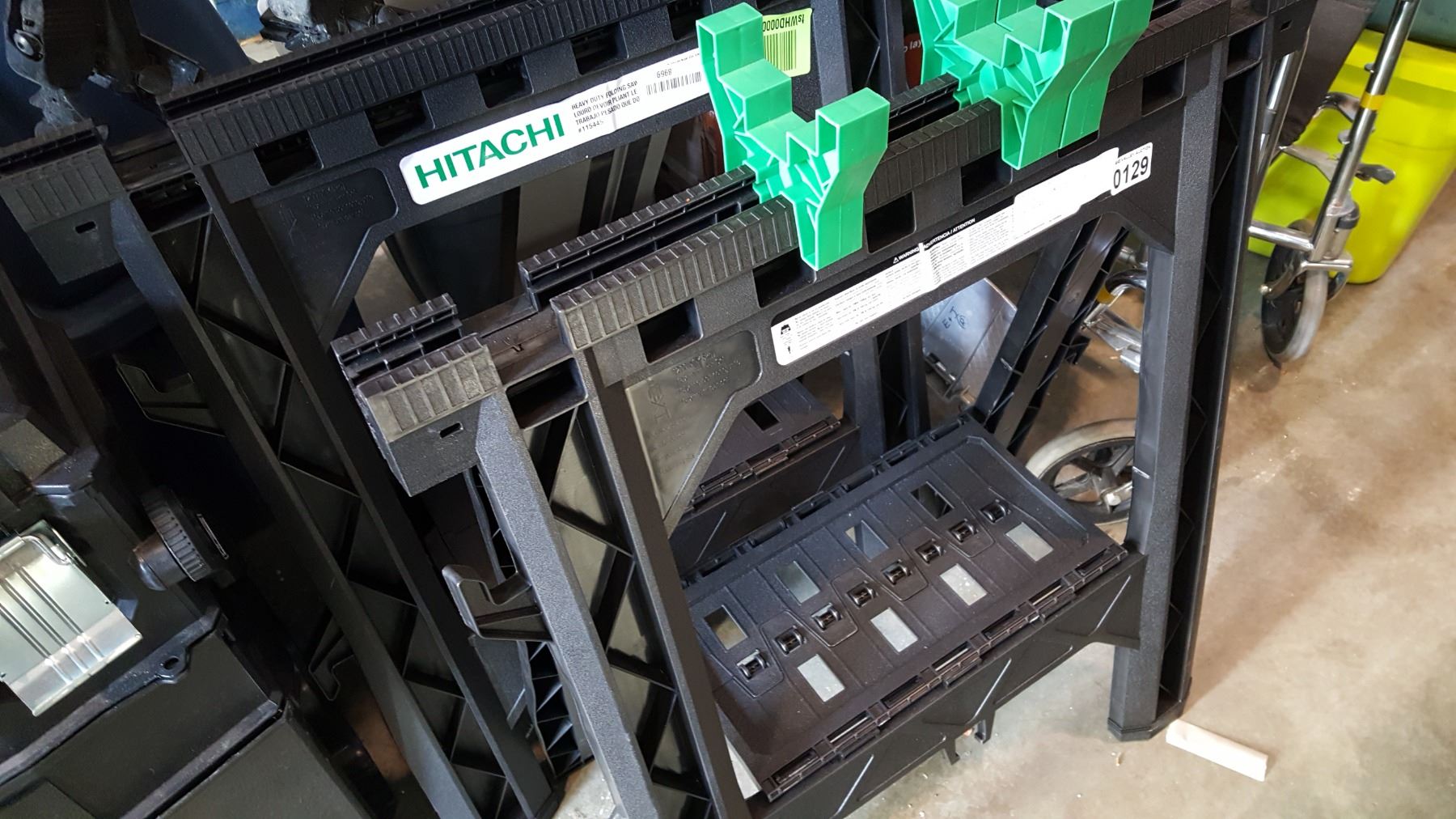 2 HATACHI SAW HORSES AND MAKITA RAIL