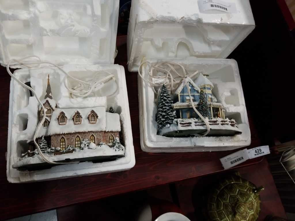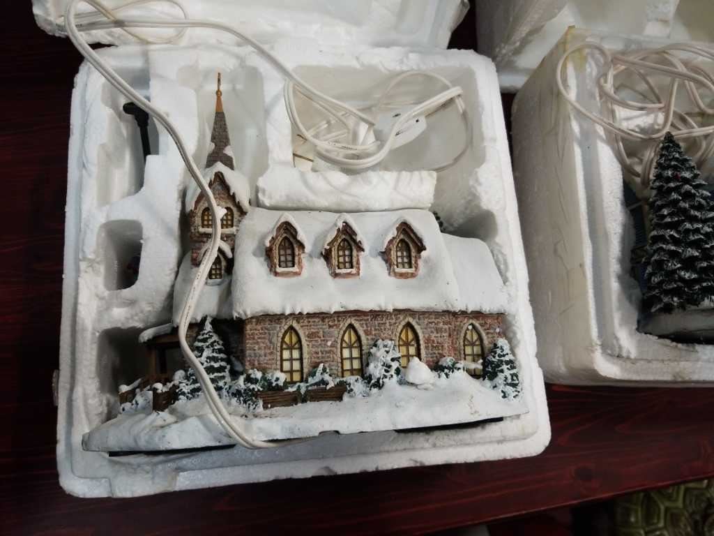 2 HAWTHORNE VILLAGE CHRISTMAS LIGHT UP HOUSES LIGHT OF HOPE CHURCH AND HOLIDAY BED AND BREAKFAST