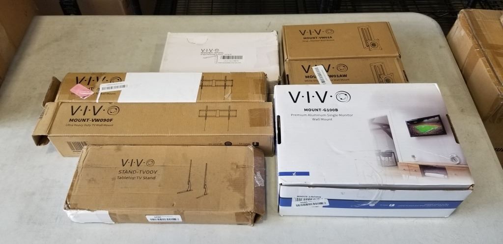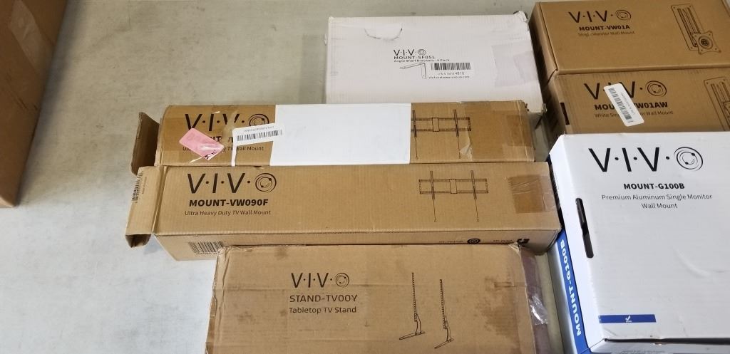 2 HEAVY DUTY TV MOUNTS, TABLETOP TV STAND, ANGLE SHELF BRACKETS, ALUMINUM WALL MONITOR MOUNT AND SINGL WALL MONITOR MOUNT