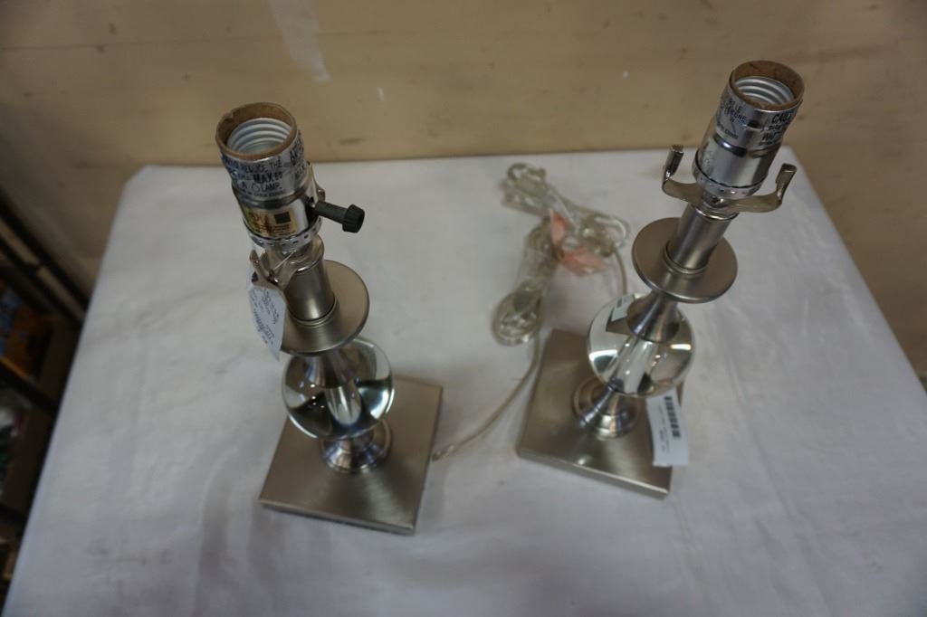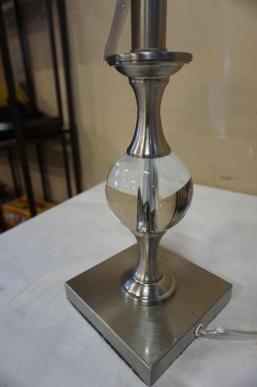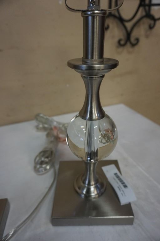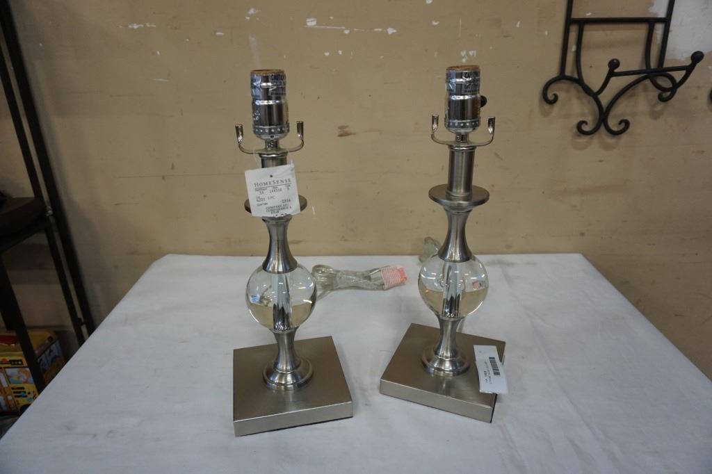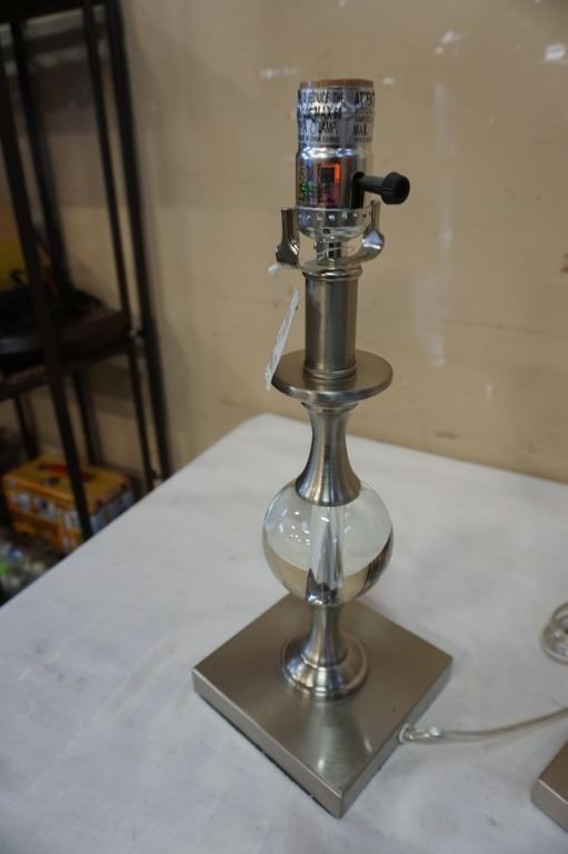 2 HOME SENSE TABLE LAMPS - BRUSHED METAL AND ACRYLIC