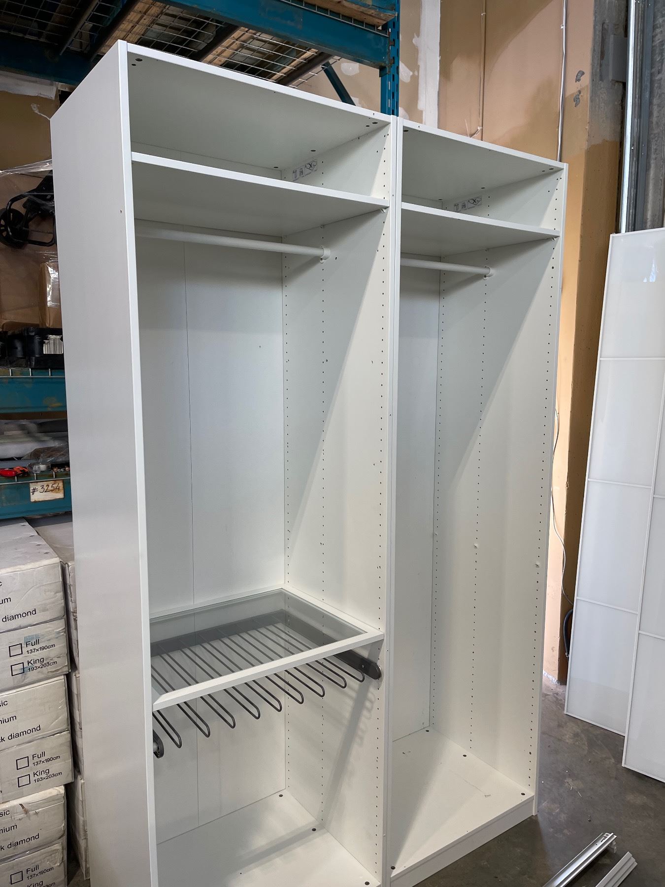2 IKEA PAXX WARDROBES W/ GLASS DOORS, 2 CLOTHING BARS AND PANT RACK - 75 X 58 X 236 CM EACH