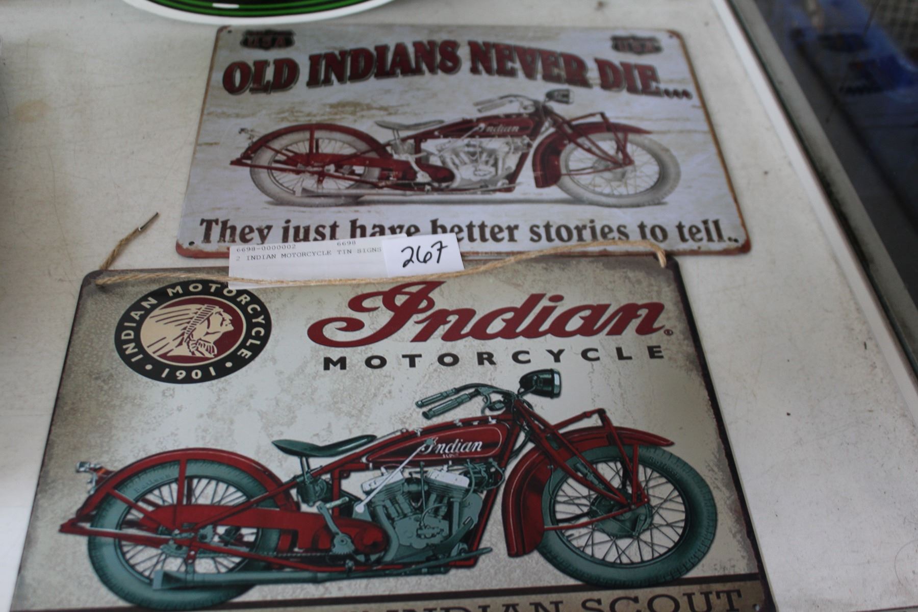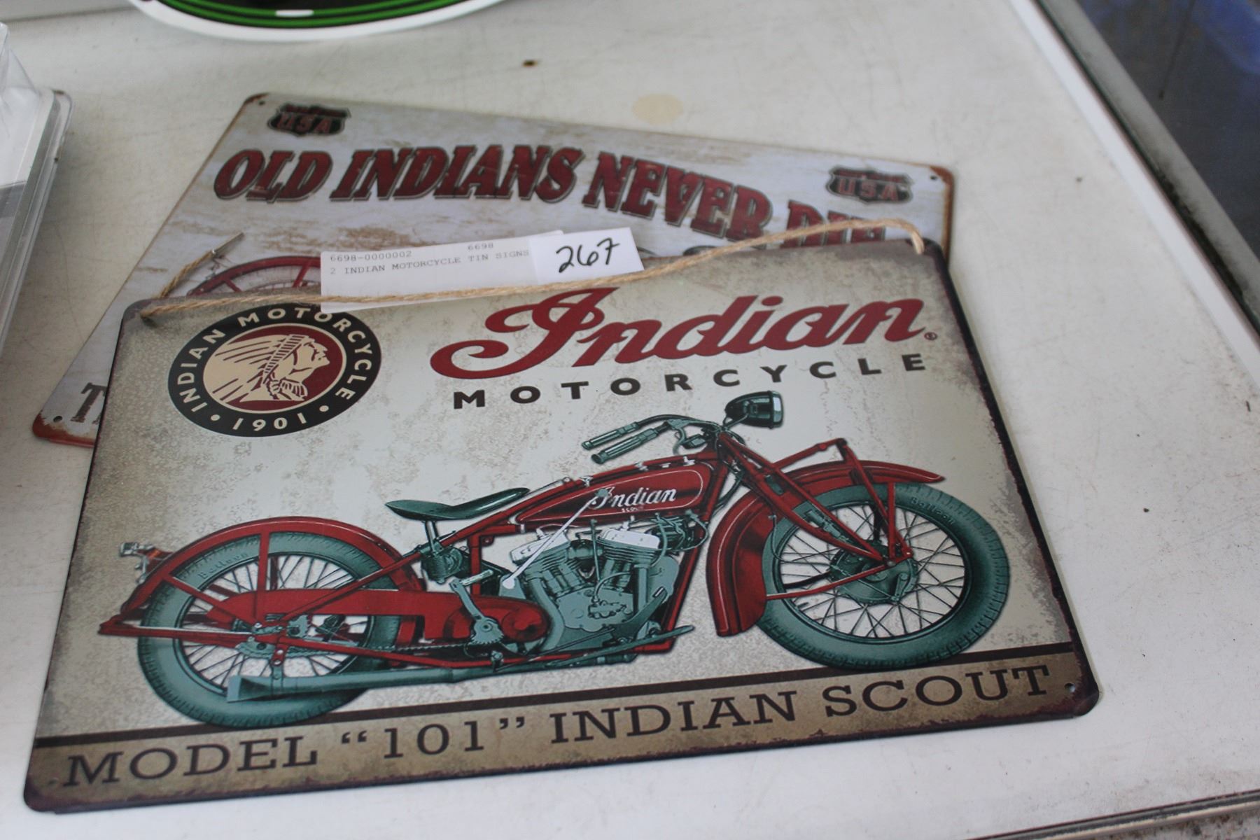 2 INDIAN MOTORCYCLE TIN SIGNS