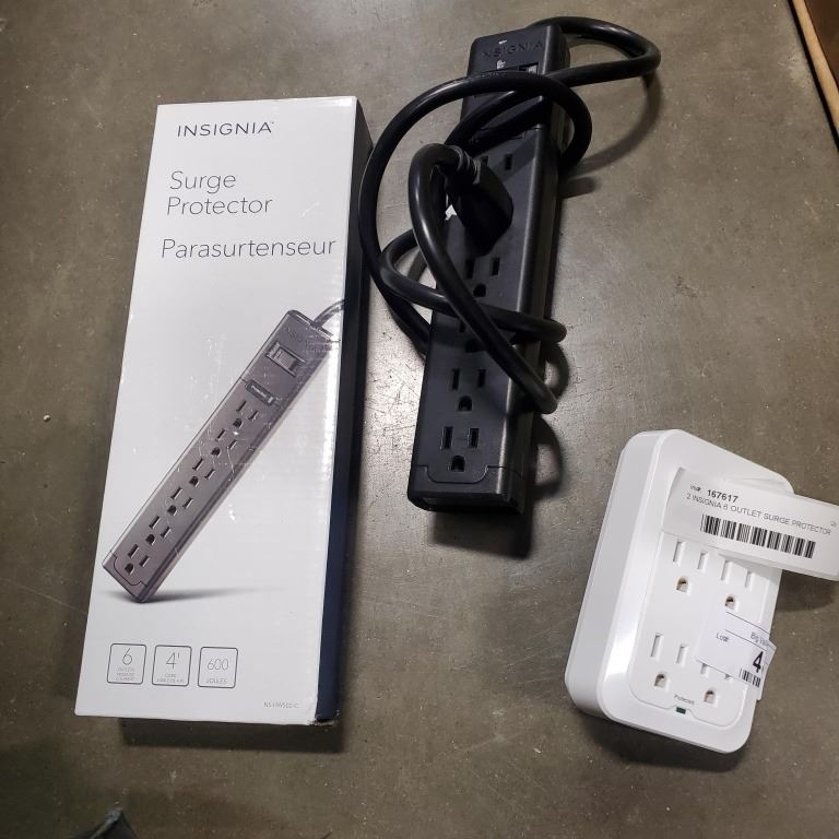 2 INSIGNIA 6 OUTLET SURGE PROTECTOR AND WALL MOUNT SURGE PROTECTOR - TESTED WORKING
