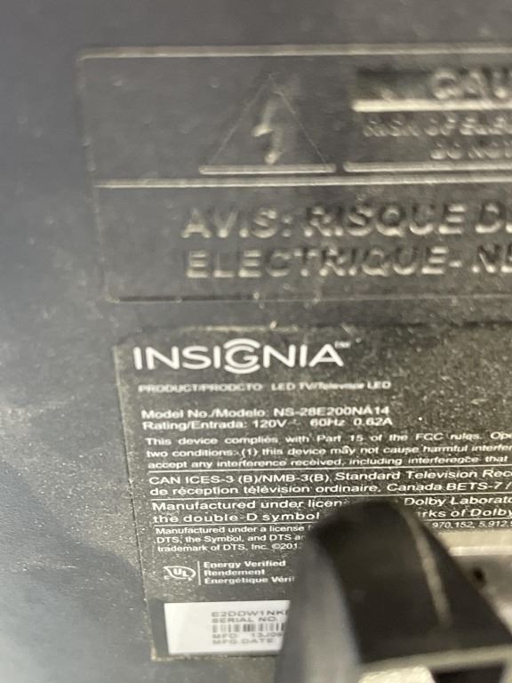2 INSIGNIA HDTVS BOTH WORKING WITH POWER CORDS AND 1 REMOTE