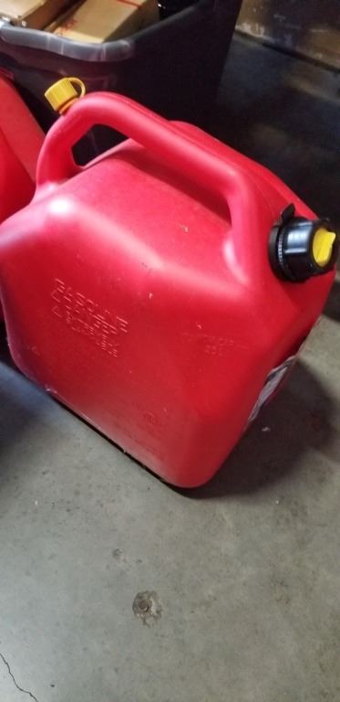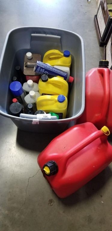 2 JERRY CANS AND TOTE OF SHOP FLUIDS
