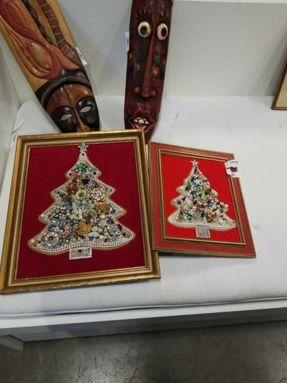 2 JEWELRY CHRISTMAS TREE ART PIECES