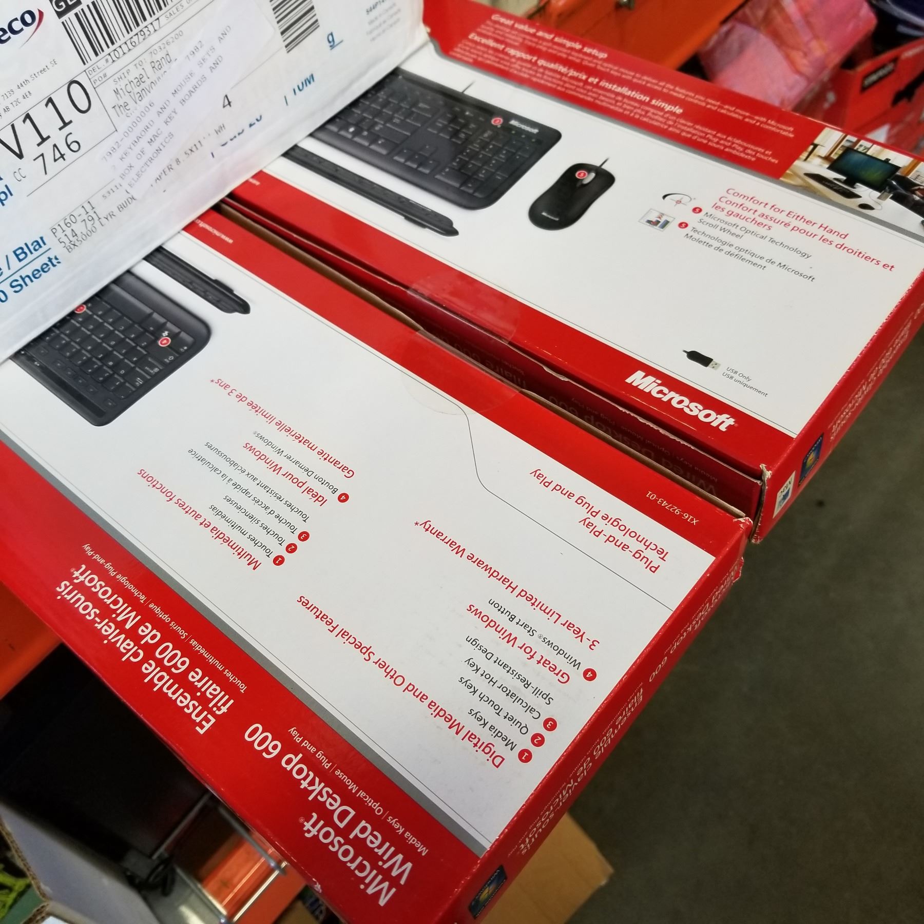 2 KEYBOARD AND MOUSE SETS AND BOX OF MAC KEY BOARDS AND ELECTRONICS