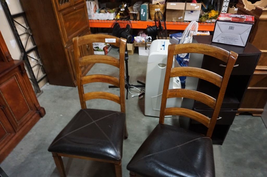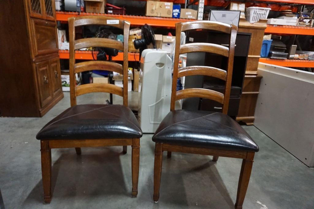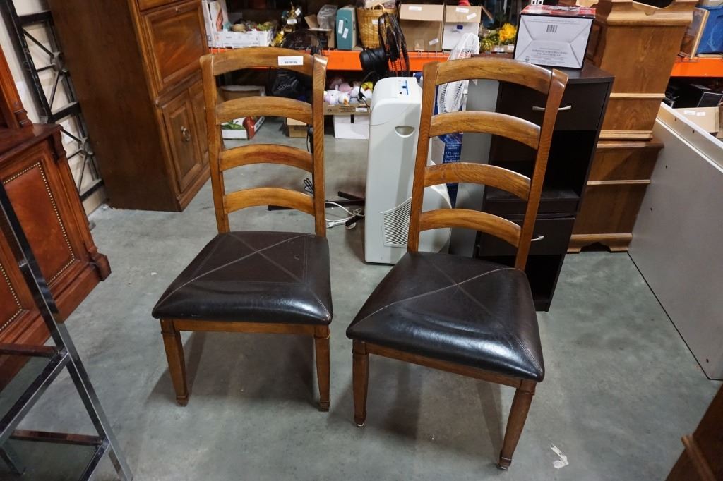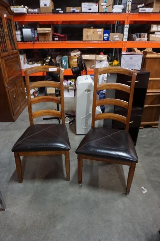 2 LADDER BACK CHAIRS WITH LEATHER LOOK SEATS