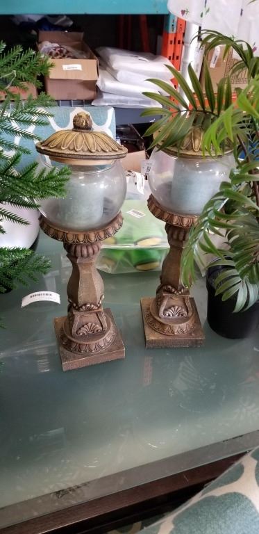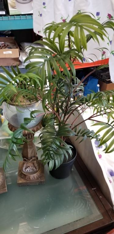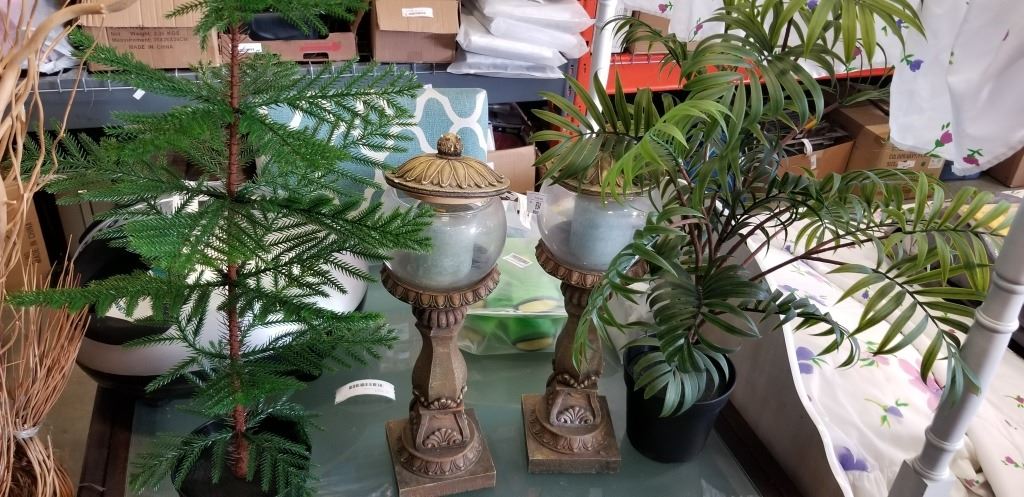 2 LANTERNS AND 2 SMALL ARTIFICIAL PLANTS