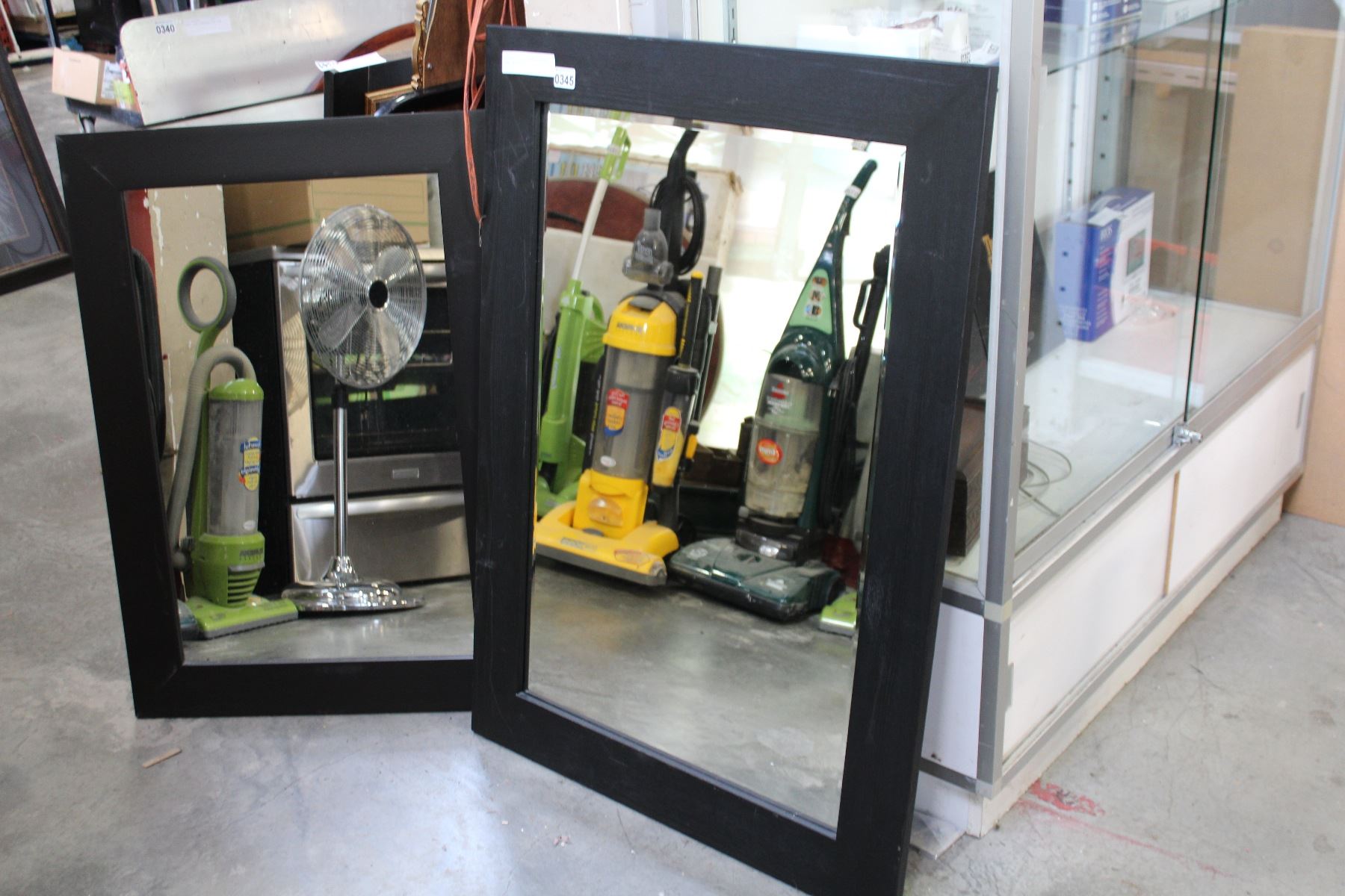 2 LARGE BLACK FRAMED MIRRORS, ONE BEVELLED