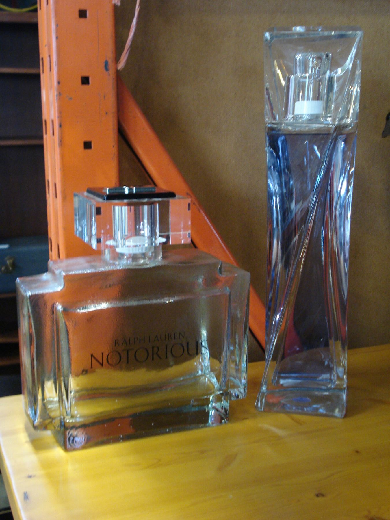 2 LARGE PERFUME DISPLAY BOTTLES, RALPH LAUREN AND HYPNOSE