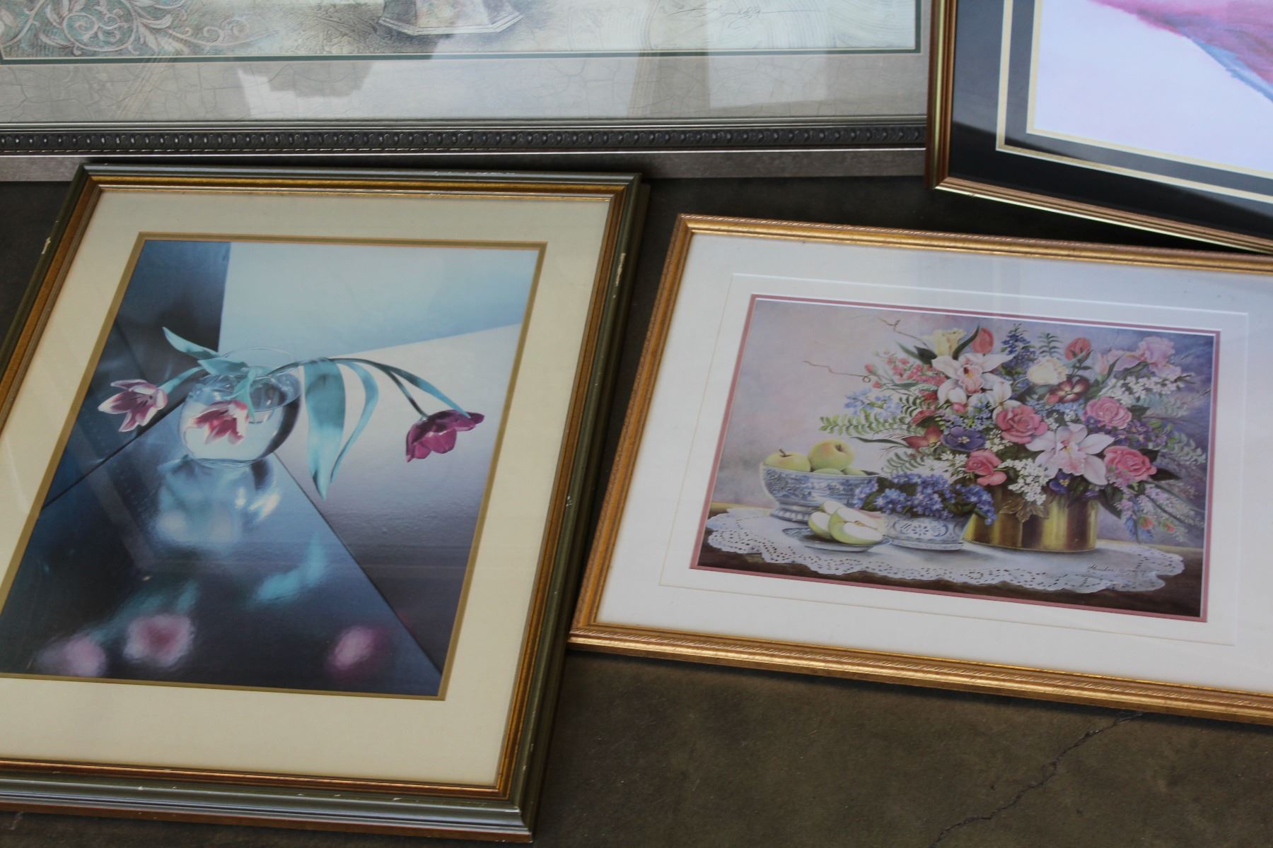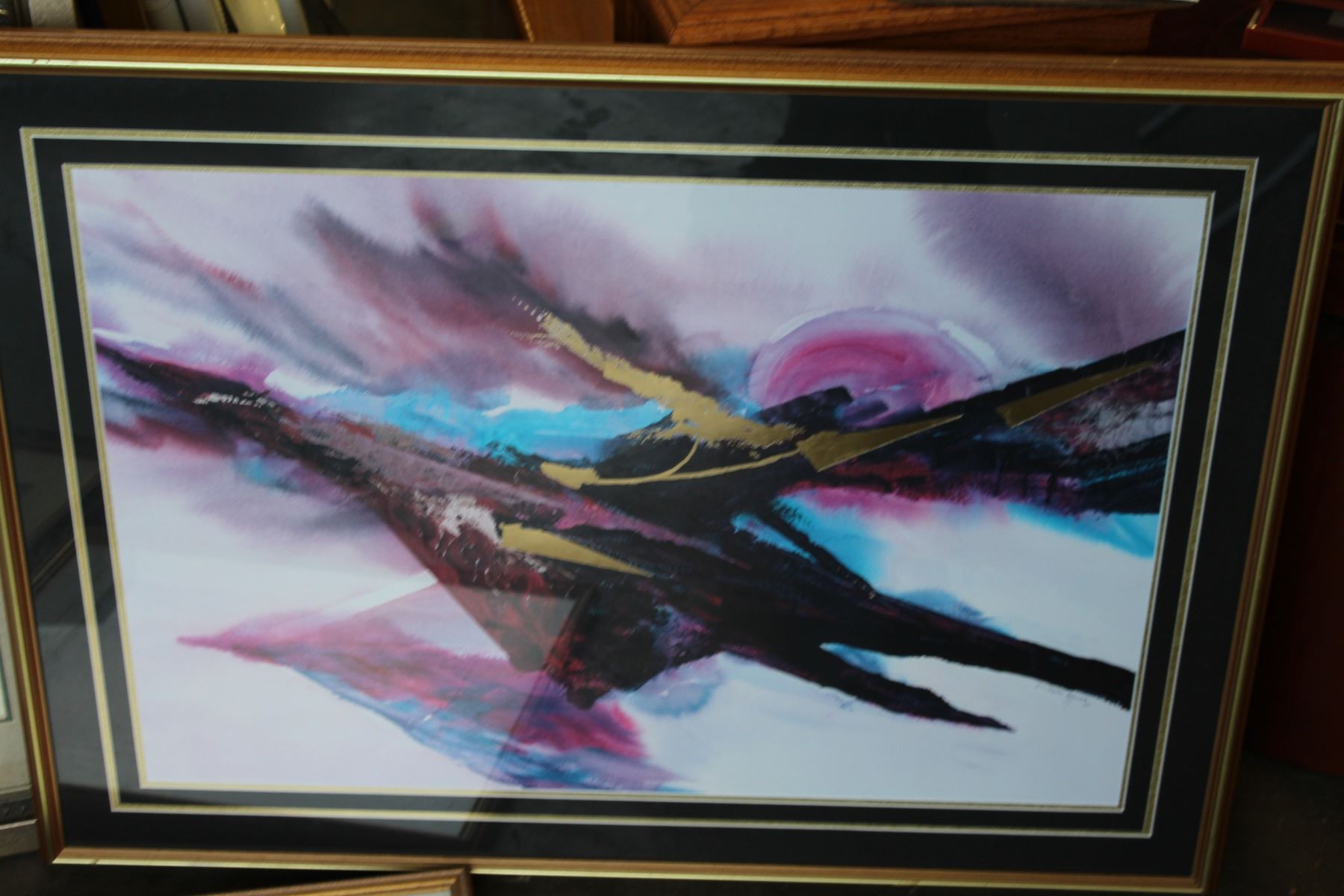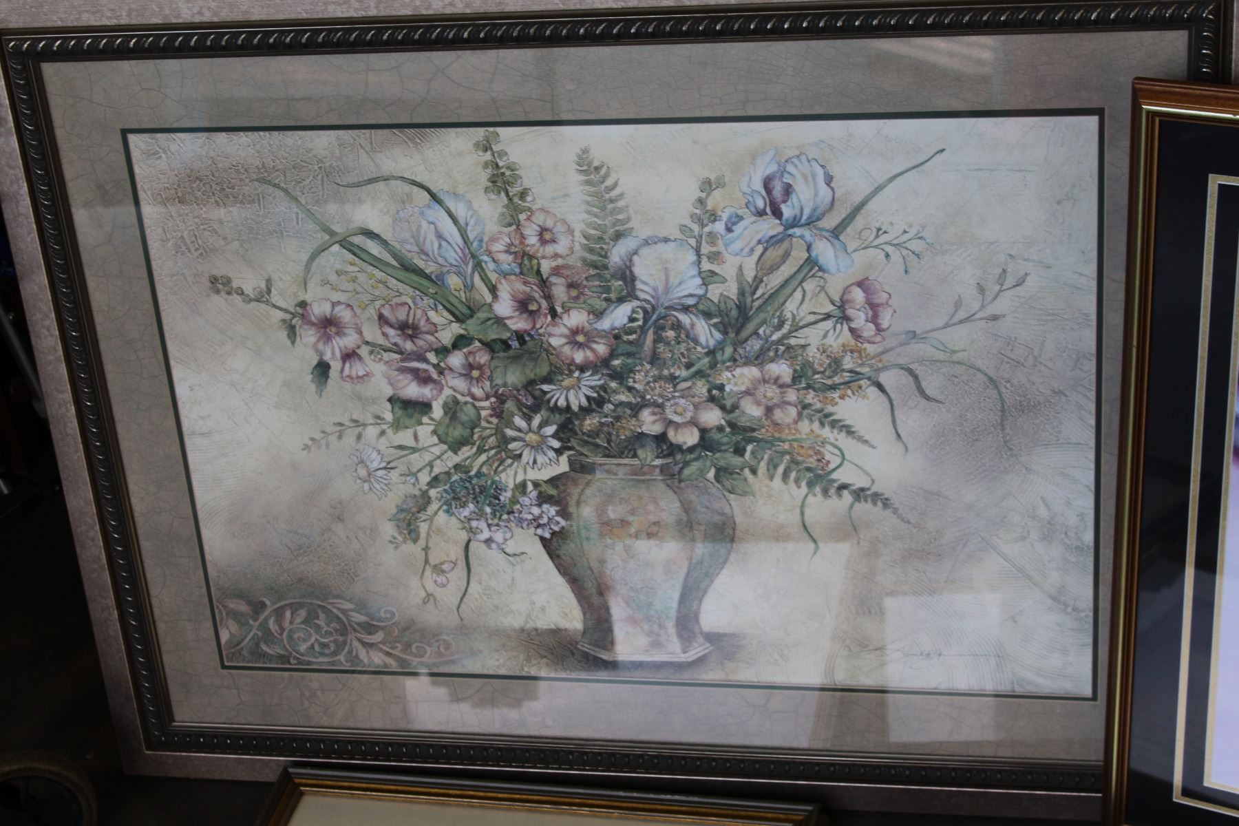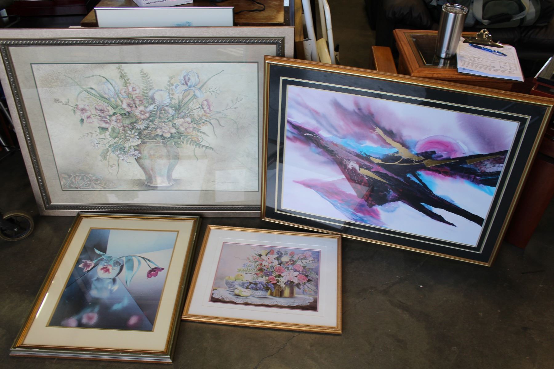 2 LARGE PRINTS ABSTRACT AND FLOWERS