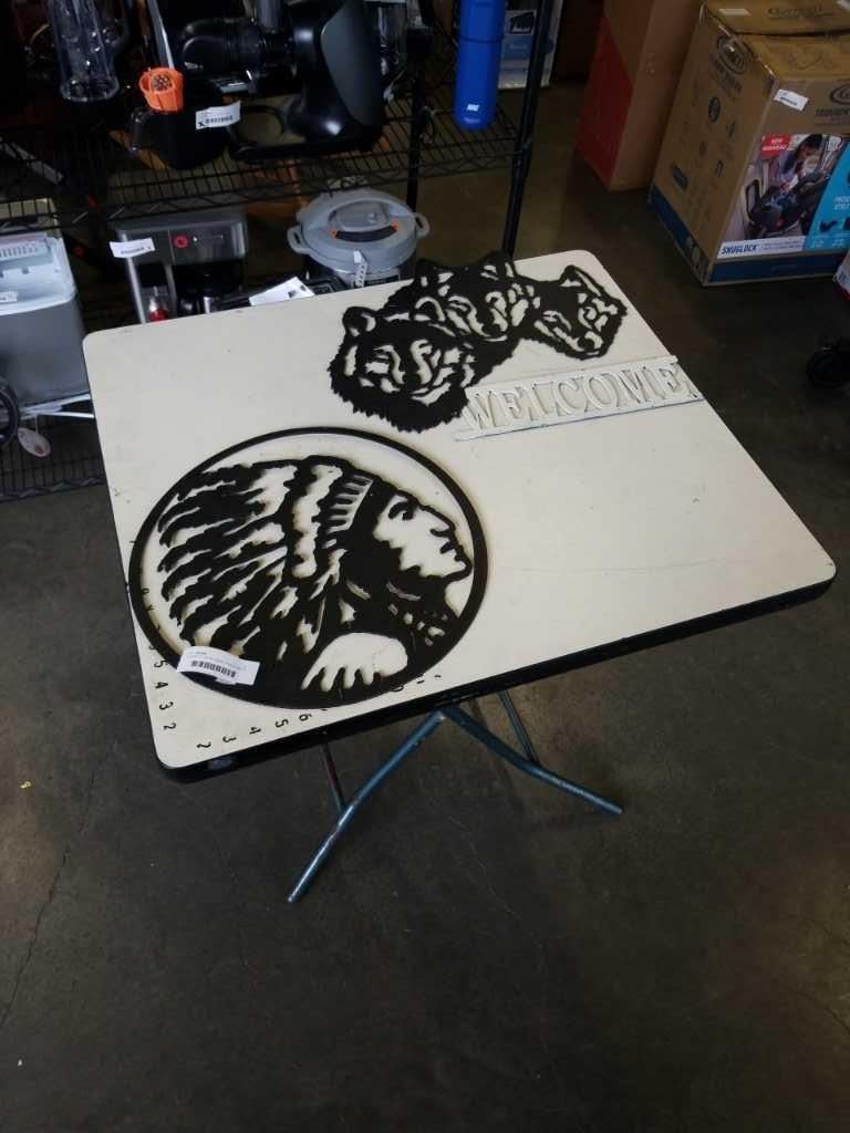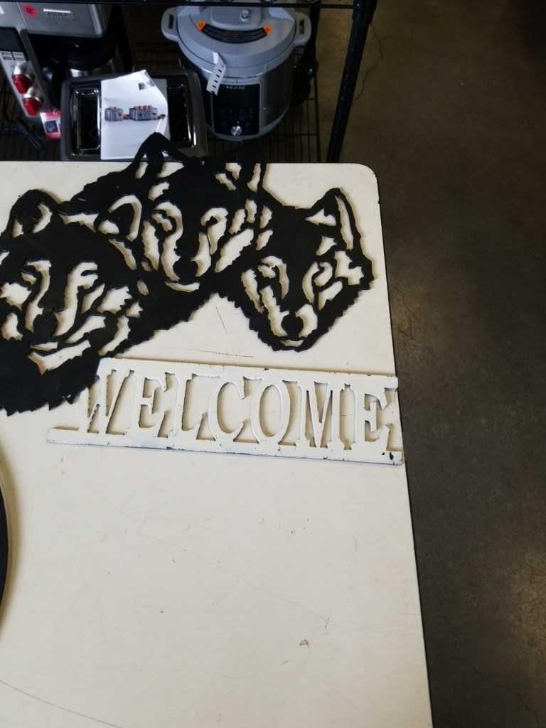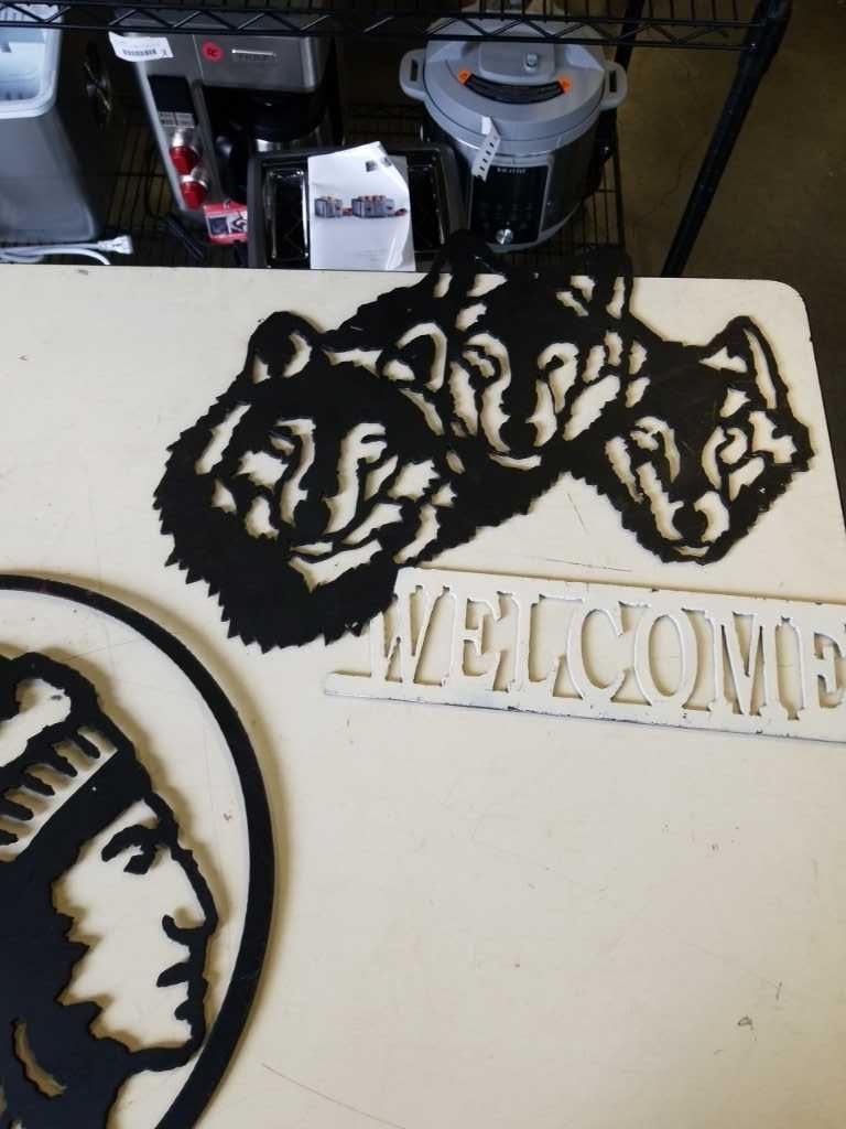 2 LASER CUT METAL SIGNS, 17 INCH AND 20 INCH