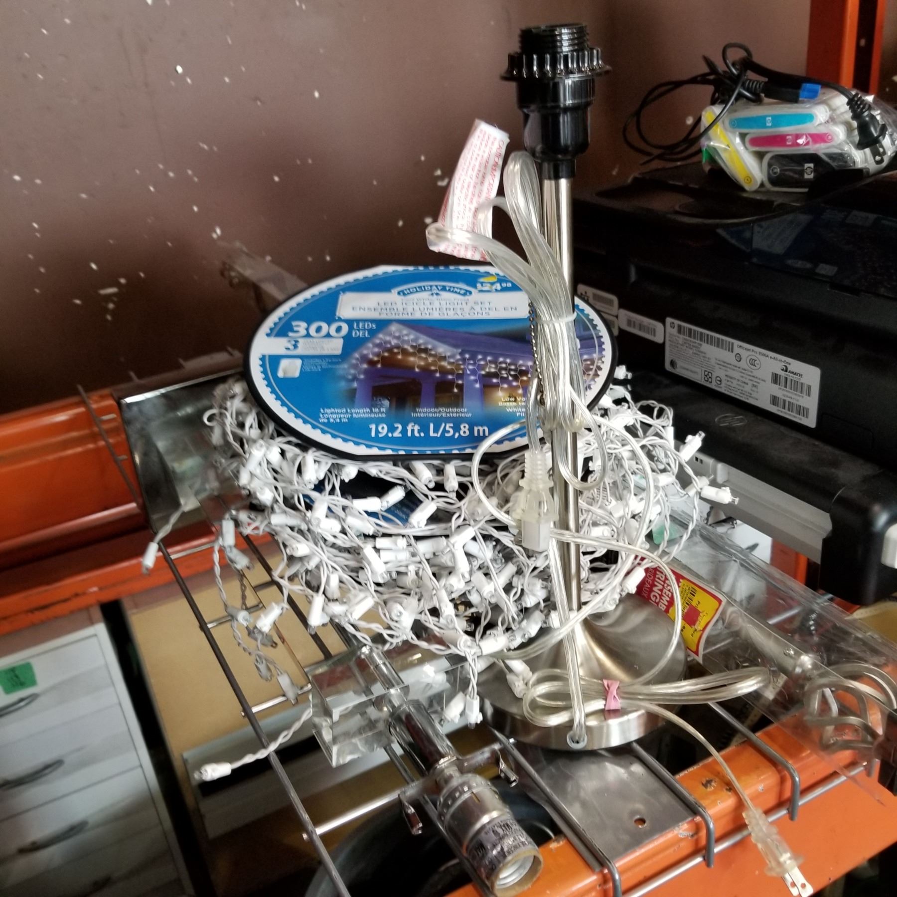 2 LED ICICLE ROPE LIGHT SETS, 2 LAMPS - NO SHADES, AND CURTAIN ROD