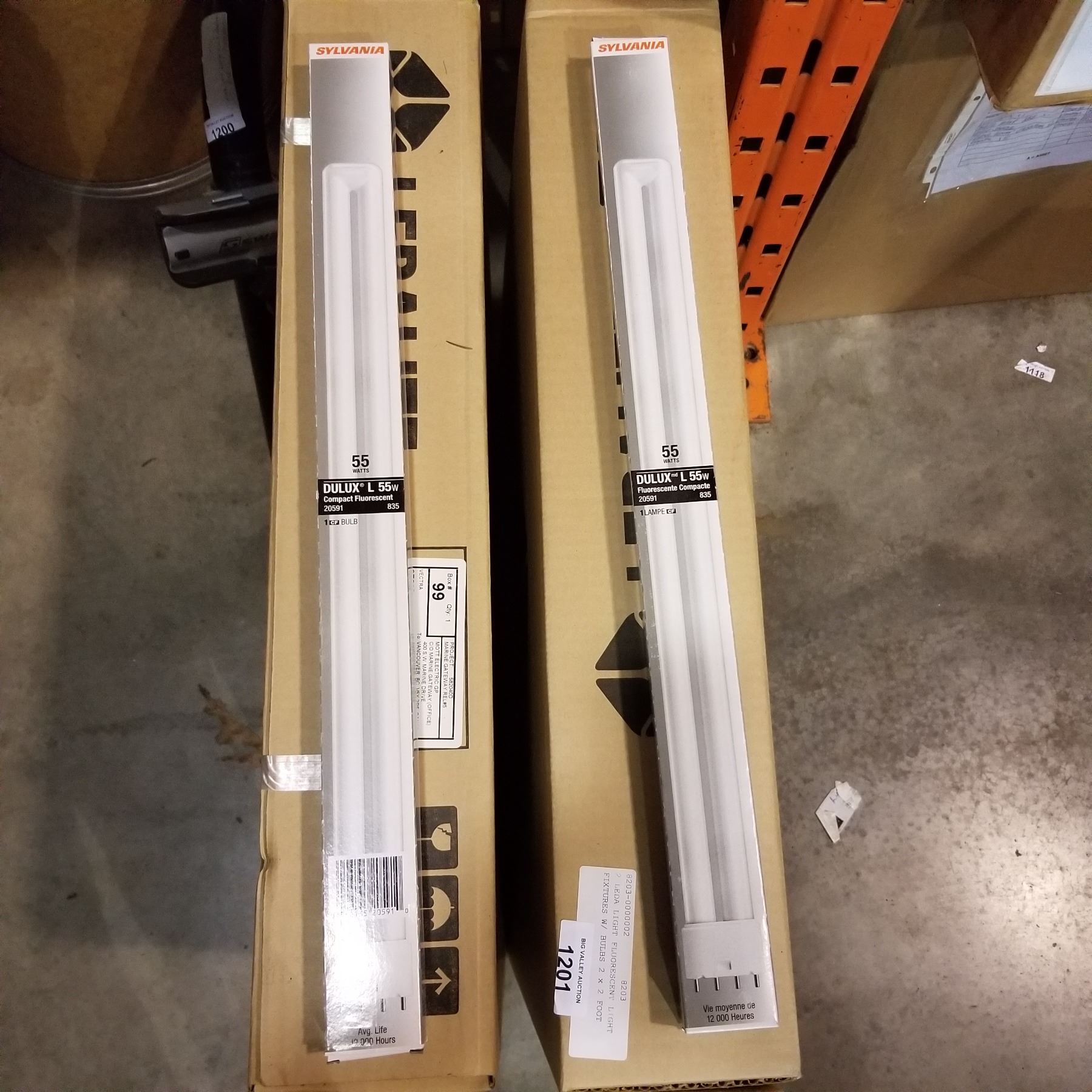2 LEDA LIGHT FLUORESCENT LIGHT FIXTURES W/ BULBS 2 x 2 FOOT