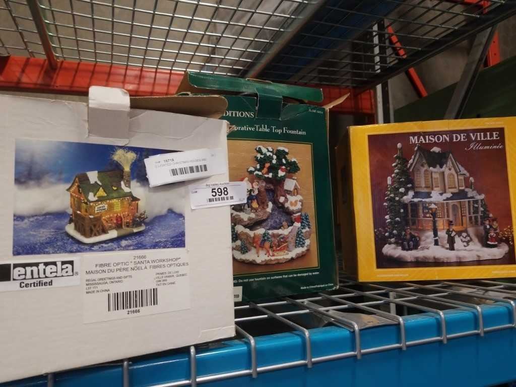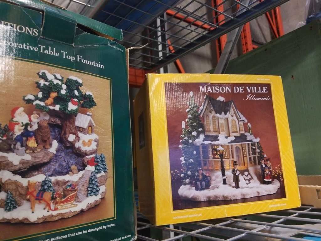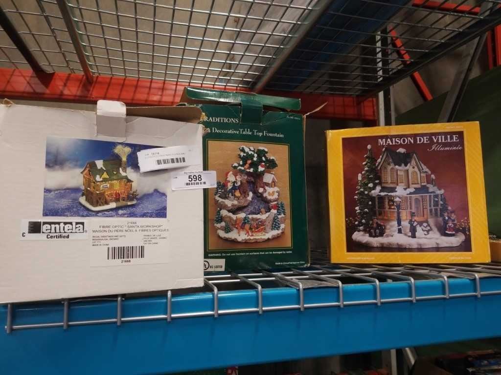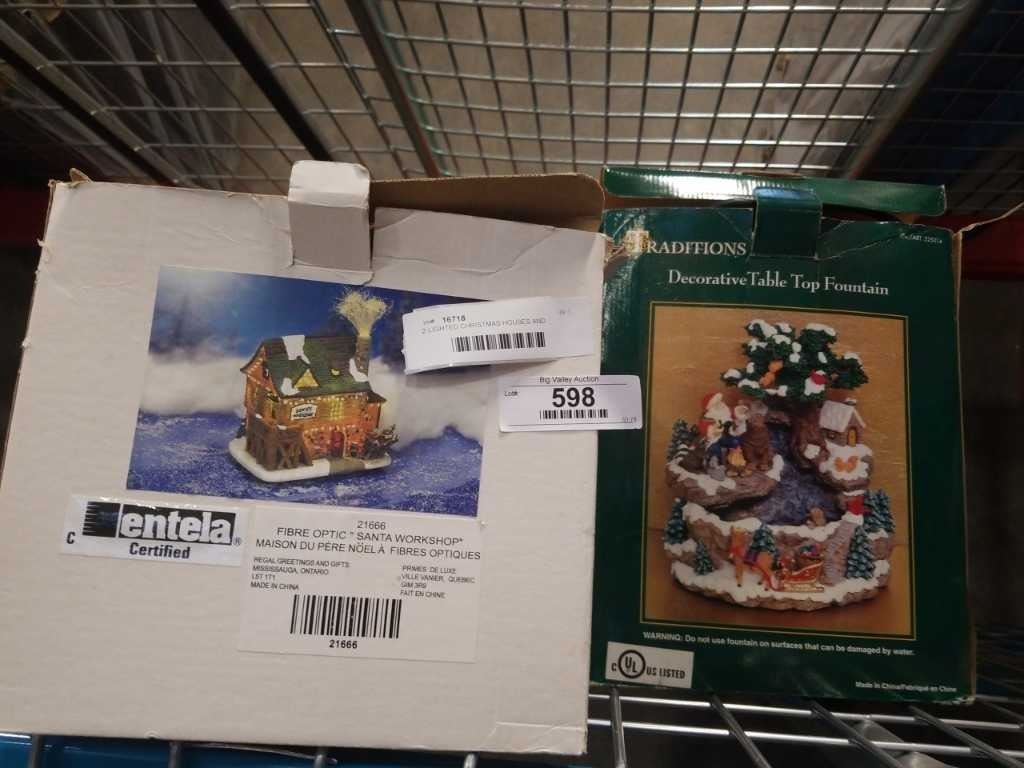 2 LIGHTED CHRISTMAS HOUSES AND FOUNTAIN