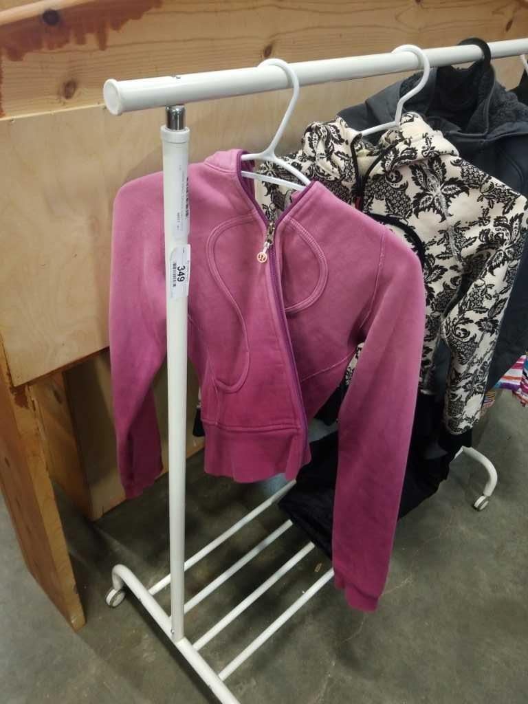 2 LULU LEMON HOODIES, OTHER JACKET AND WINTER COAT AND CLOTHING RACK