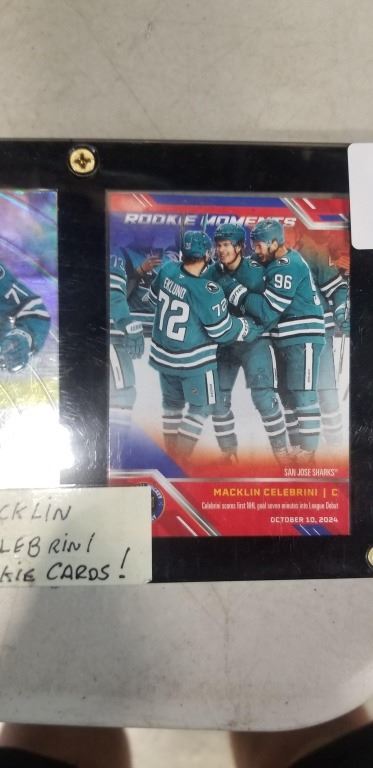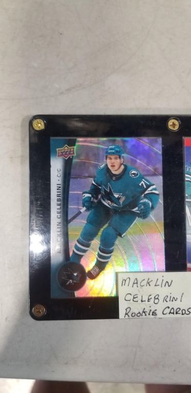 2 MACKLIN CELEBRINI ROOKIE CARDS ONE IS EMBOSSED IN PROTECTOR CASE