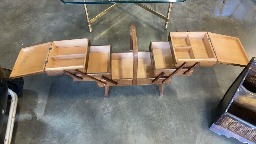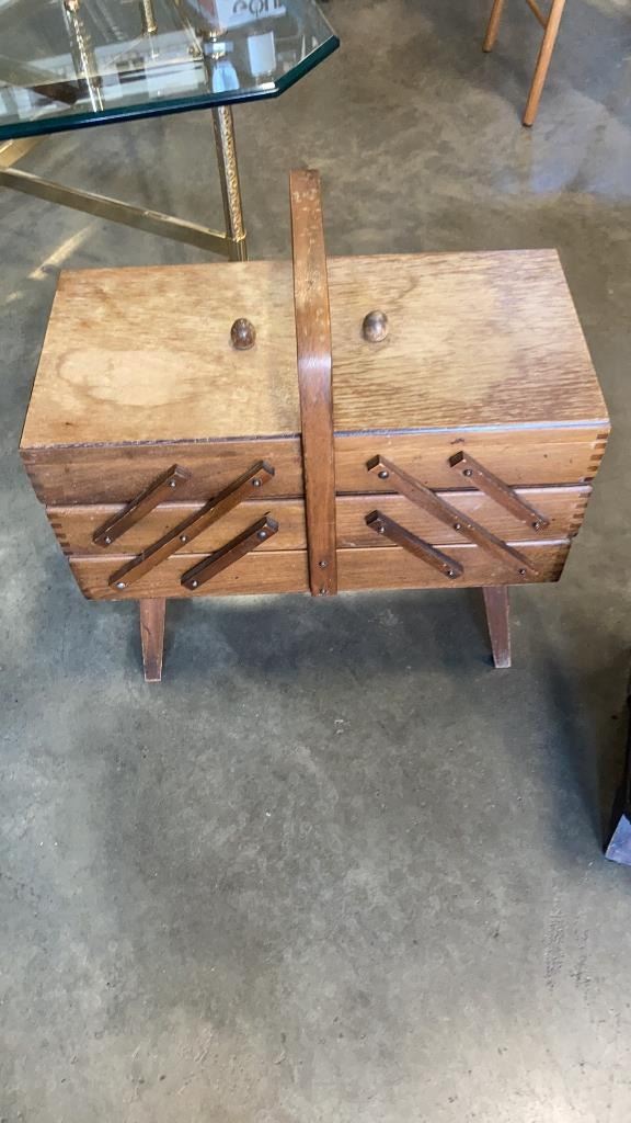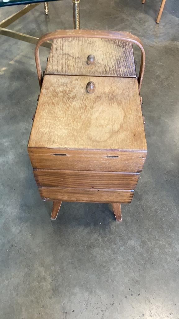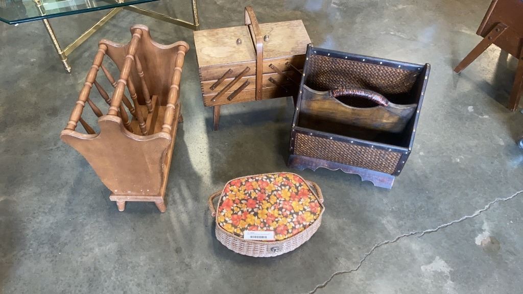 2 MAGAZINE RACKS AND 2 SEWING BOXES