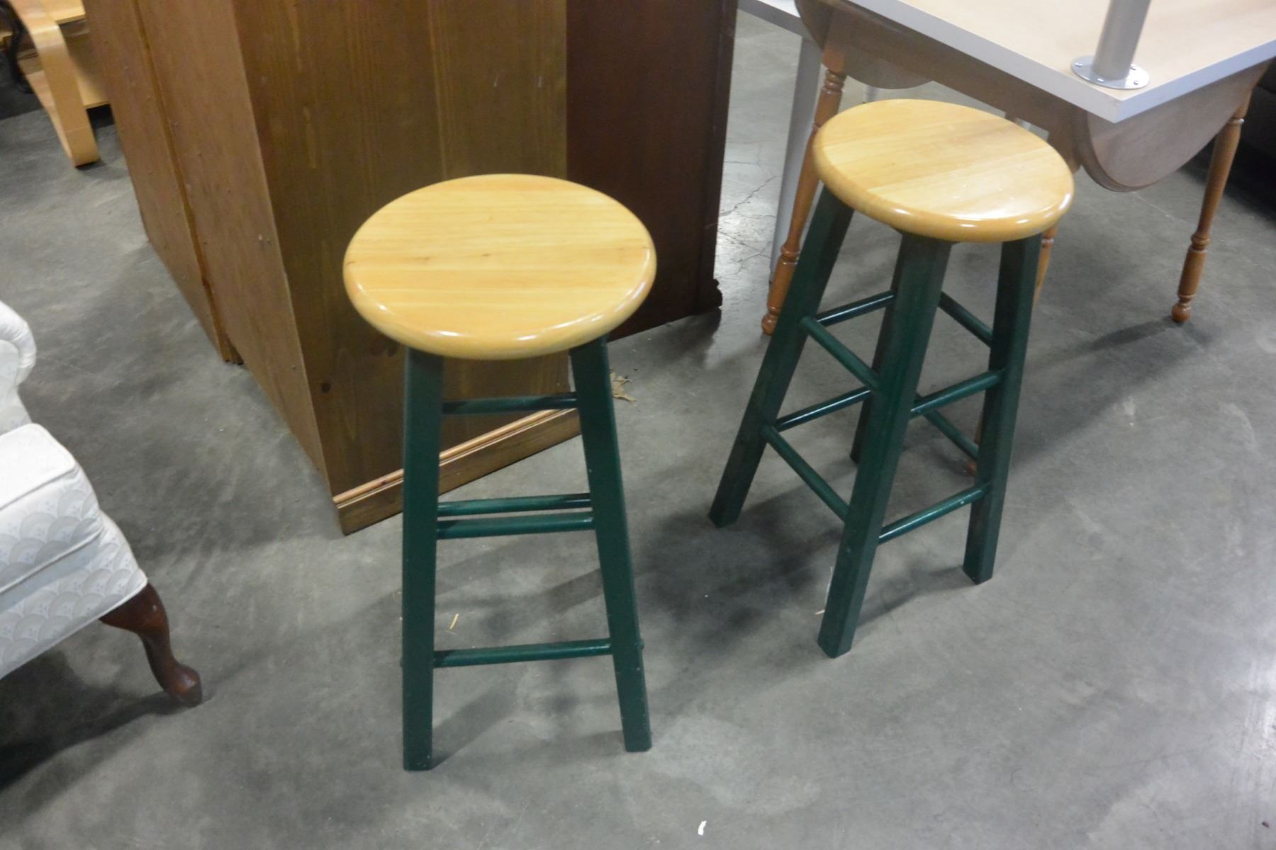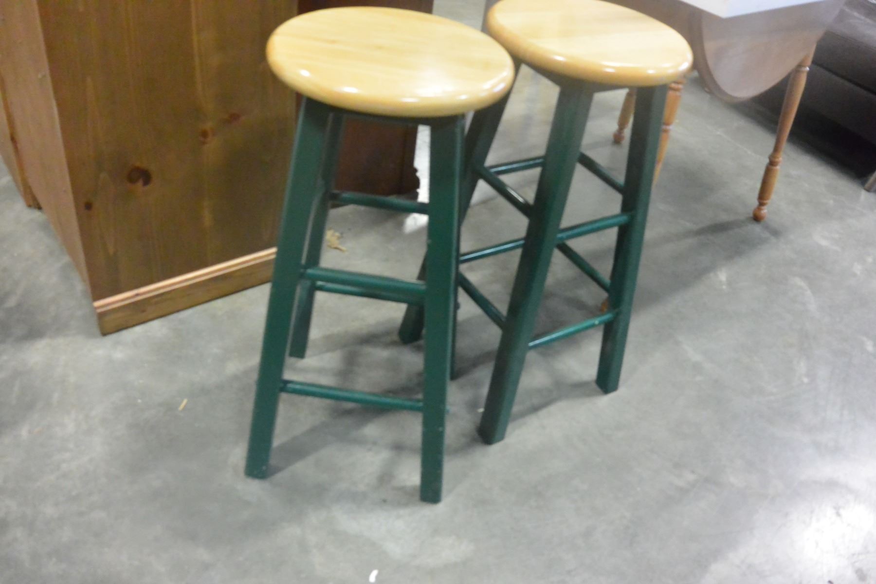 2 MAPLE AND GREEN BARSTOOLS
