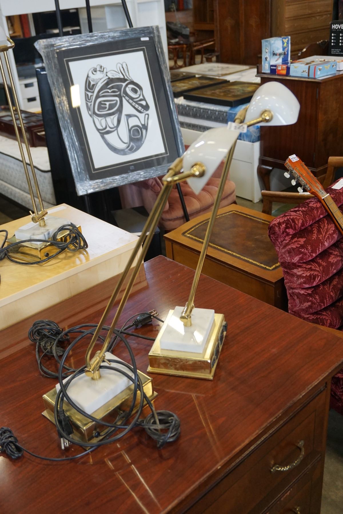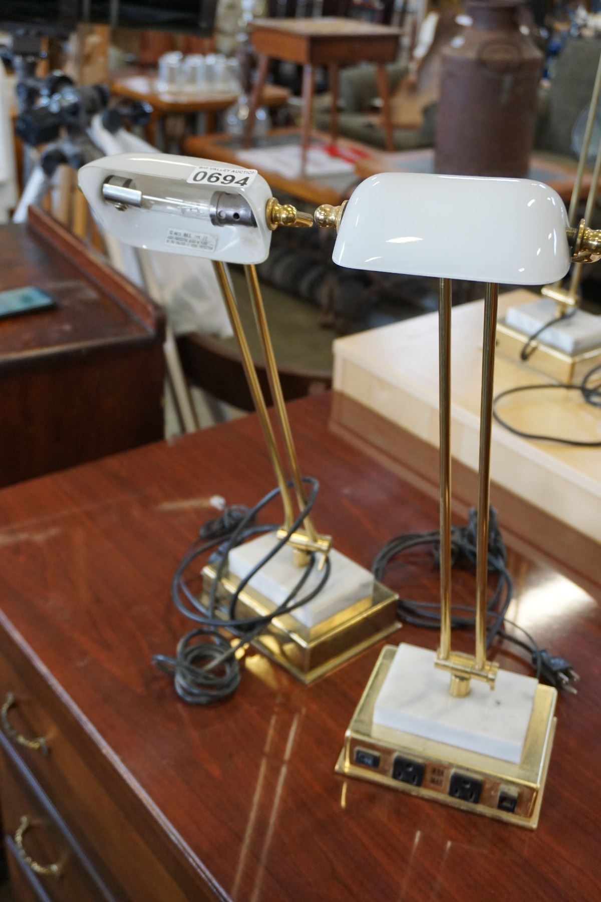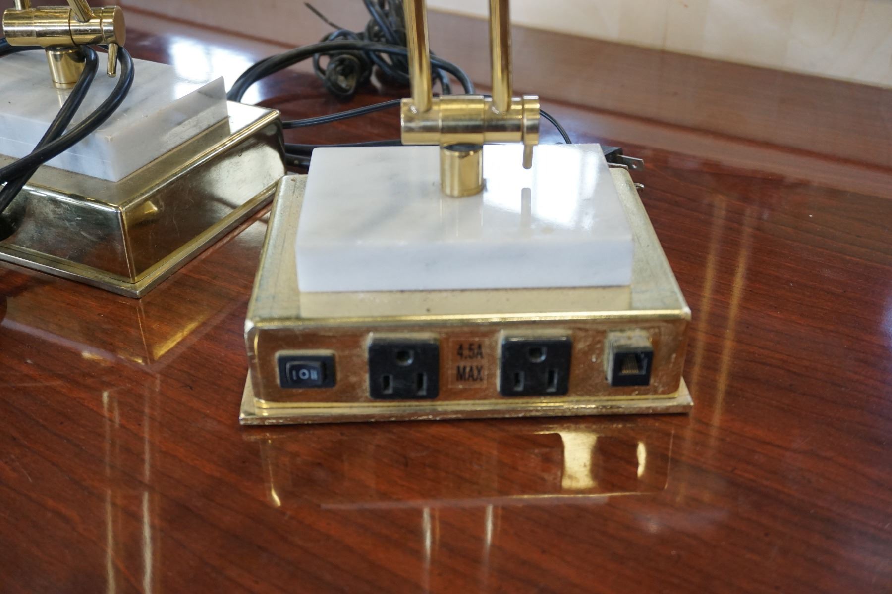 2 MARBLE BASE AND BRASS TABLE LAMPS W/ OUTLETS