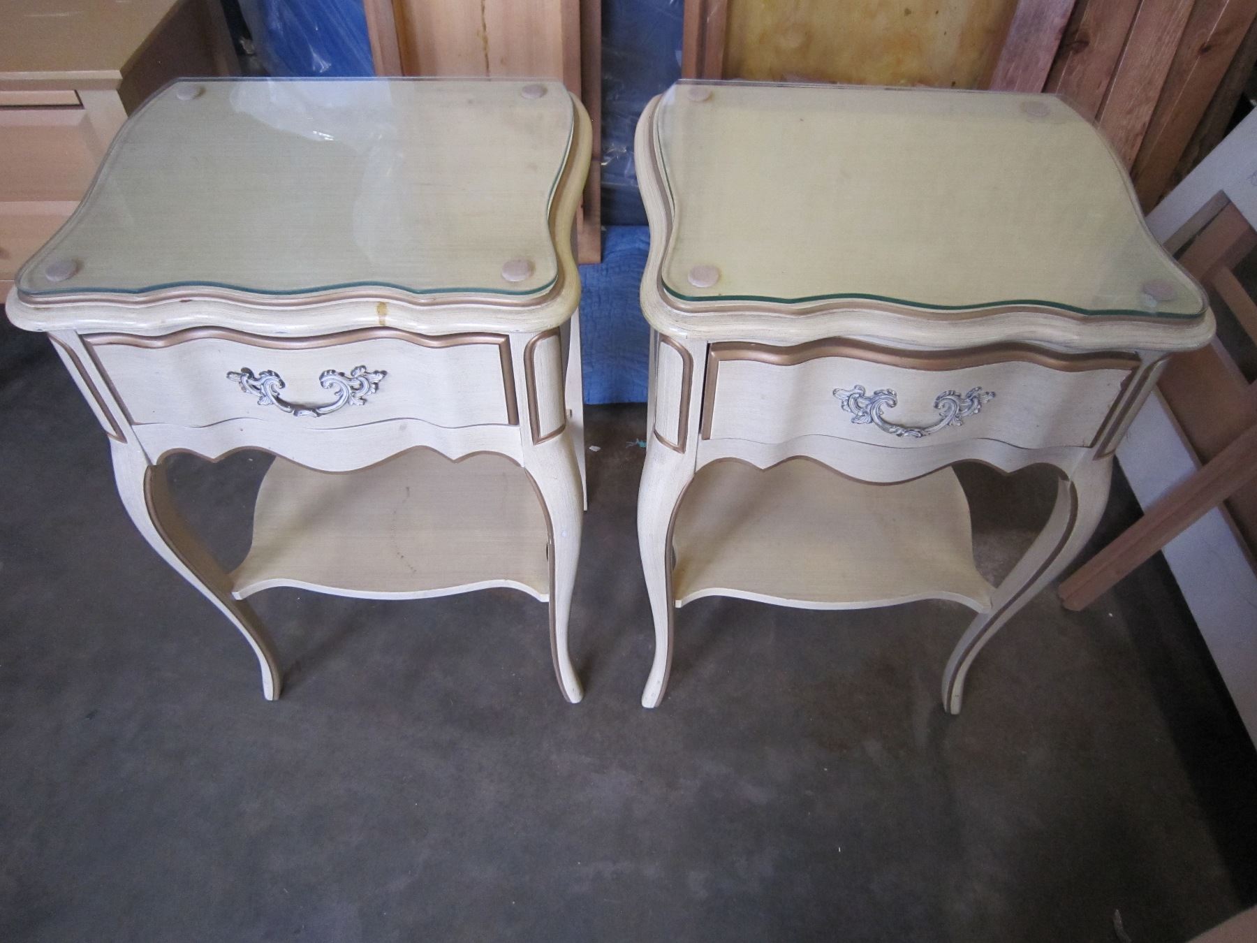 2 MATCHING FRENCH PROVINCIAL NIGHT STANDS WITH GLASS