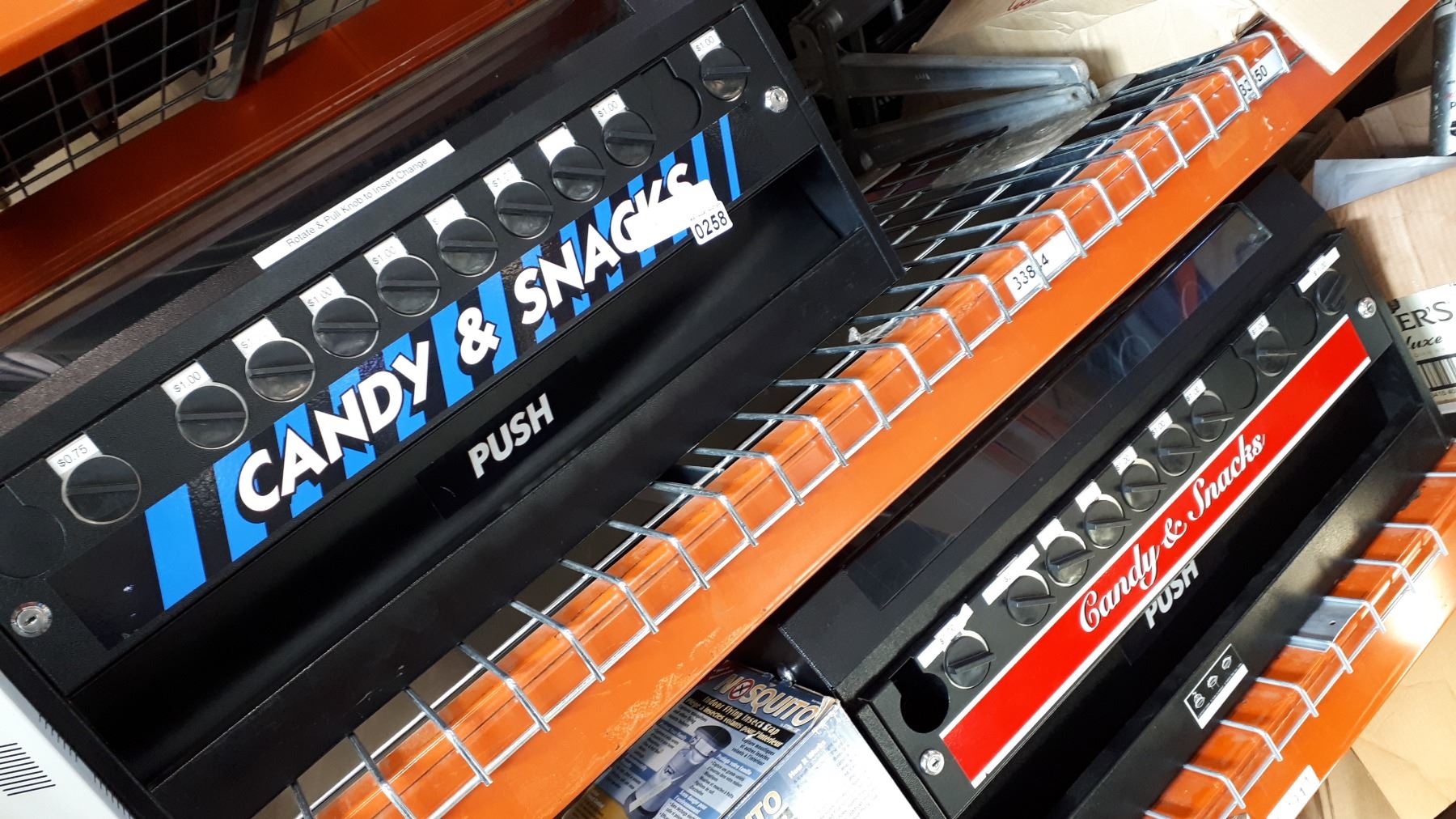 2 MECHANICAL CANDY AND SNACK MACHINES W/ KEYS AND PARTS