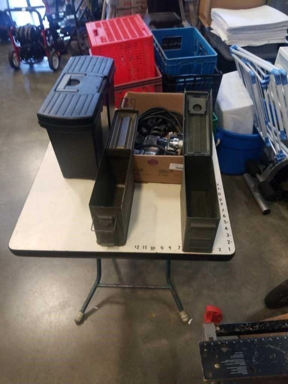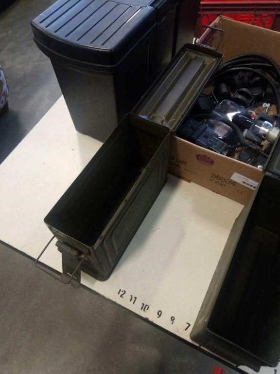 2 METAL AMMO BOXES AND PLASTIC CASE