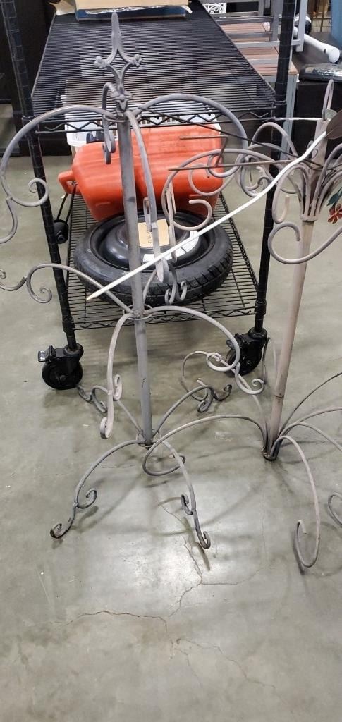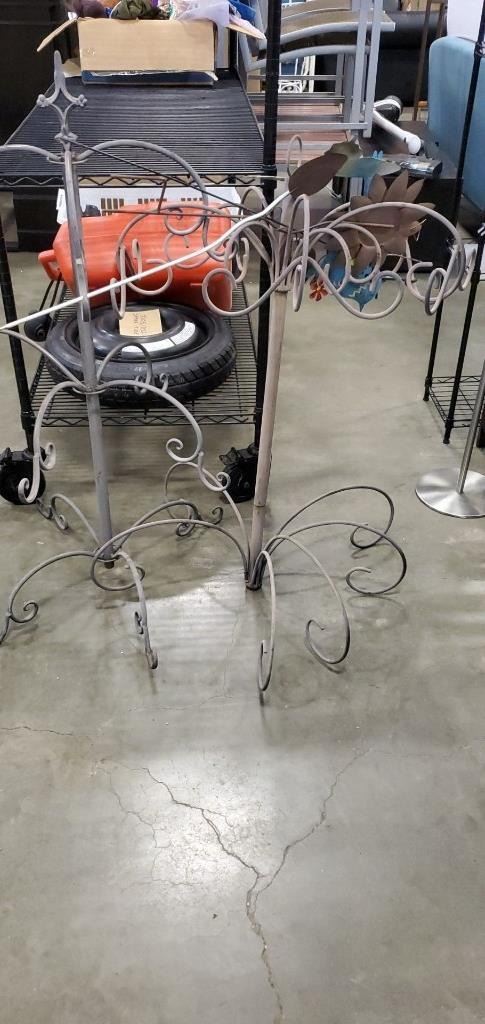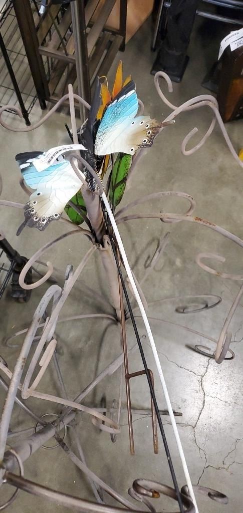 2 METAL PLANT HOLDERS AND GARDEN DECOR - BIRD, SUNFLOWER, BUTTERFLY