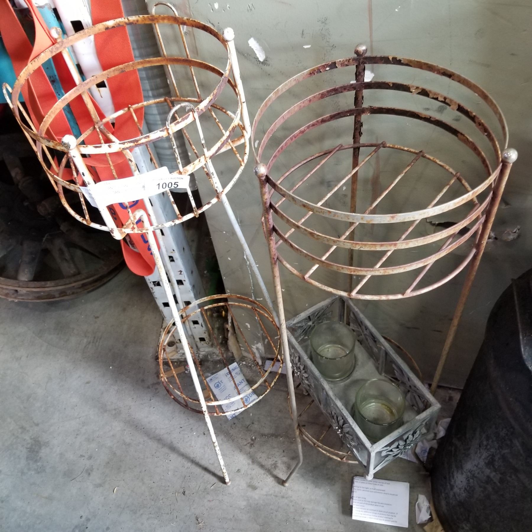 2 METAL PLANT STANDS AND DECORATIVE CANDLE HOLDER