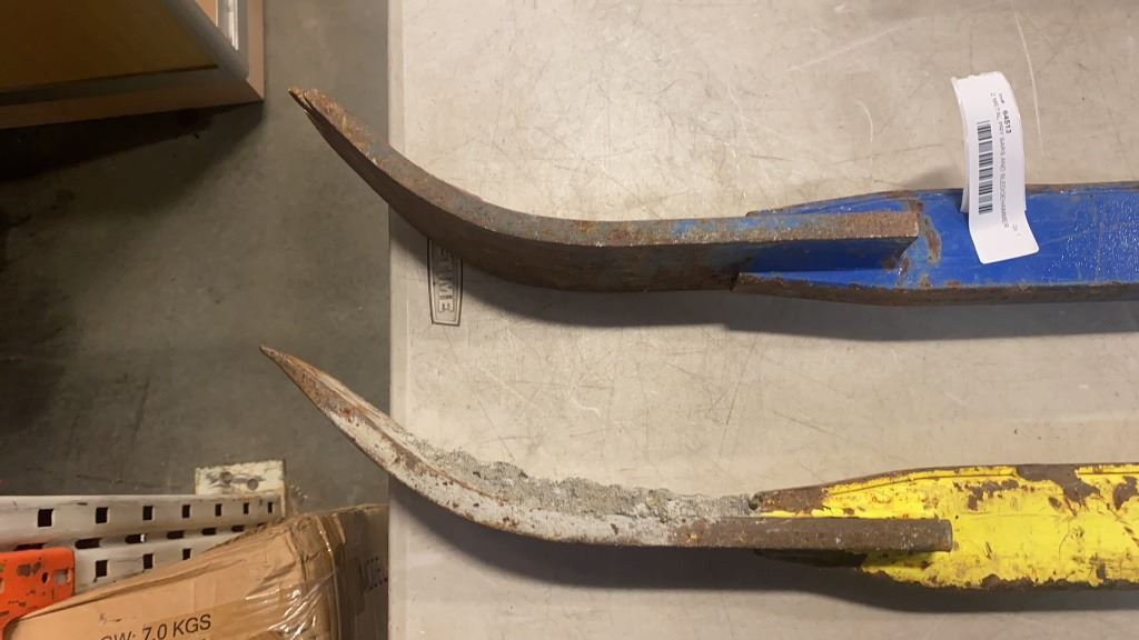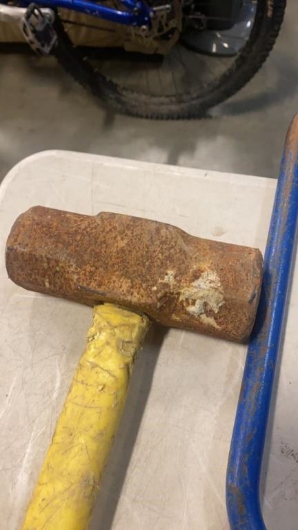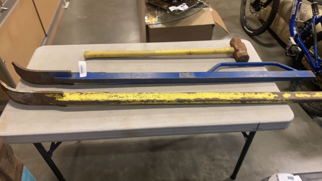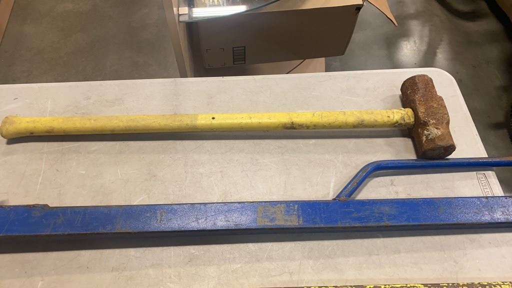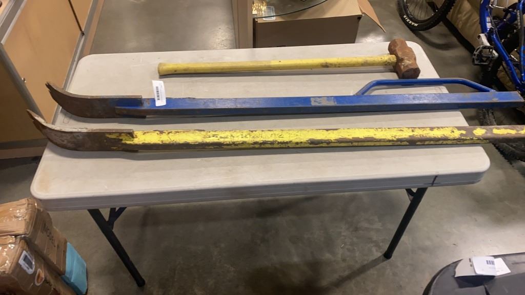 2 METAL PRY BARS AND SLEDGEHAMMER