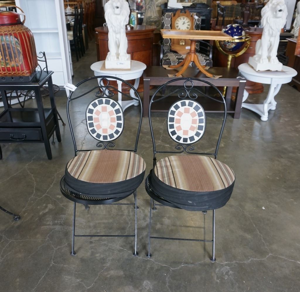 2 METAL TILE BACK FOLDING PATIO CHAIRS
