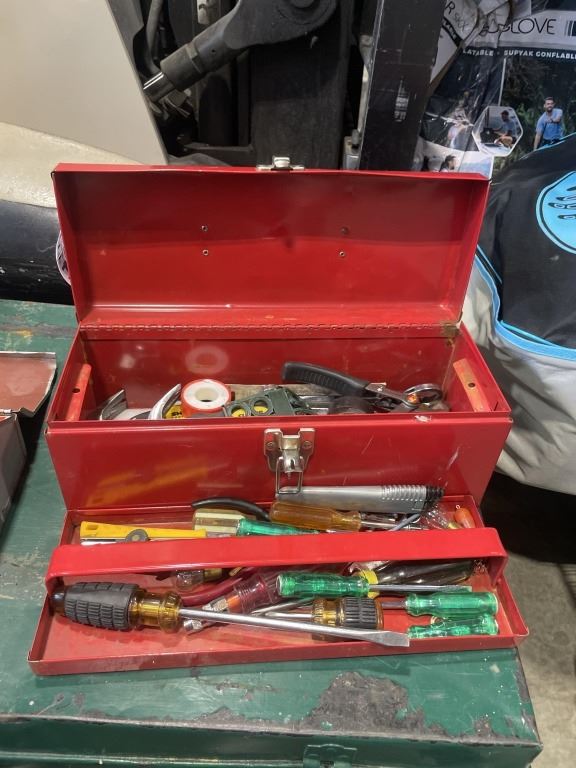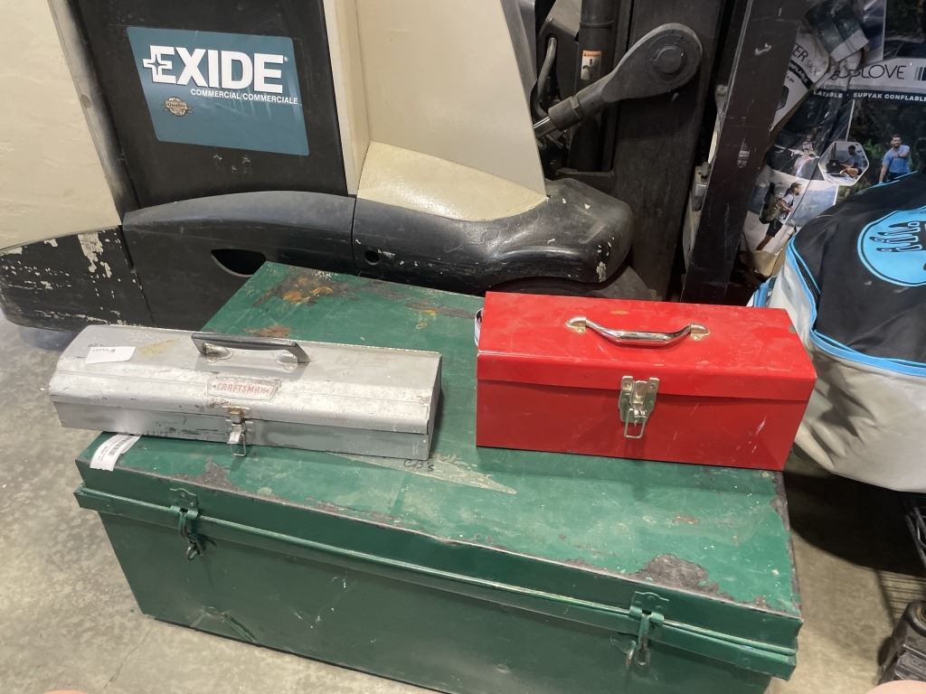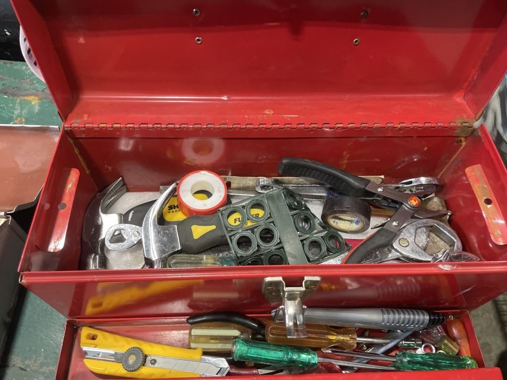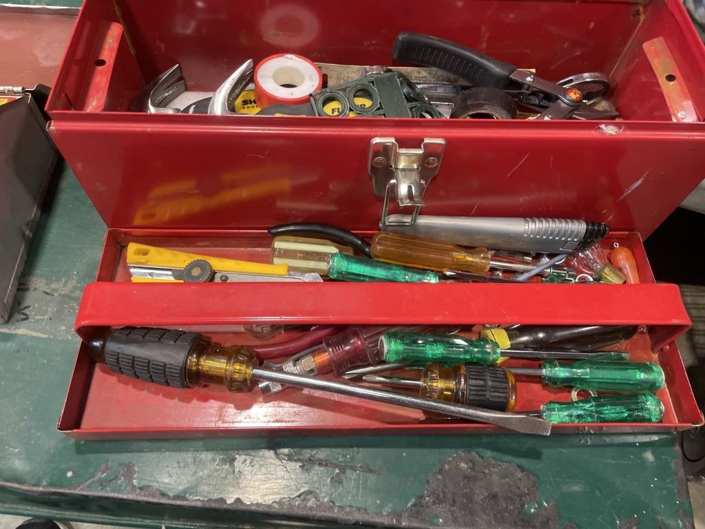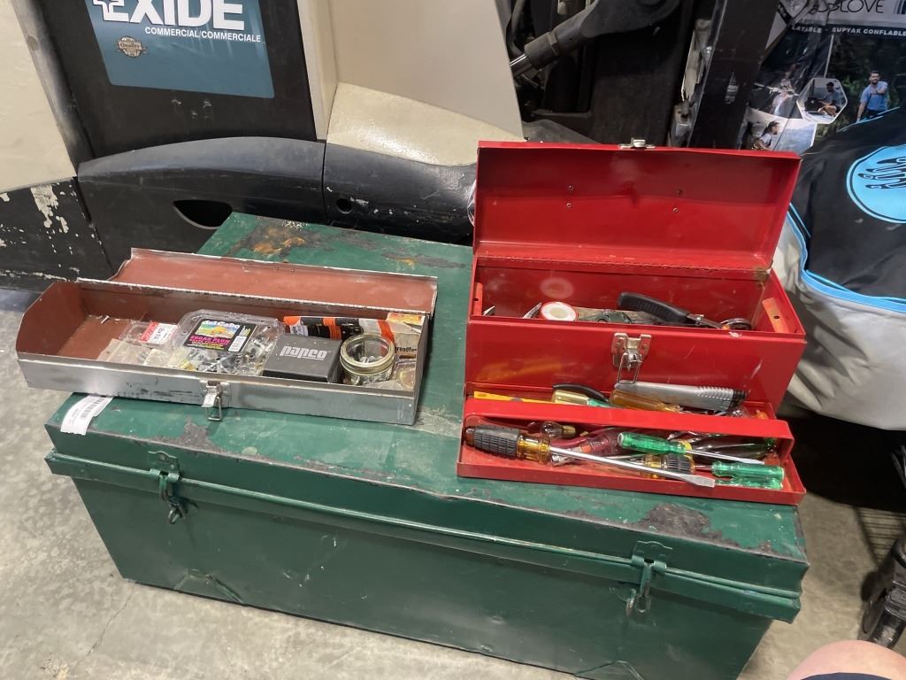 2 METAL TOOL BOXES AND ASSORTED HAND TOOLS