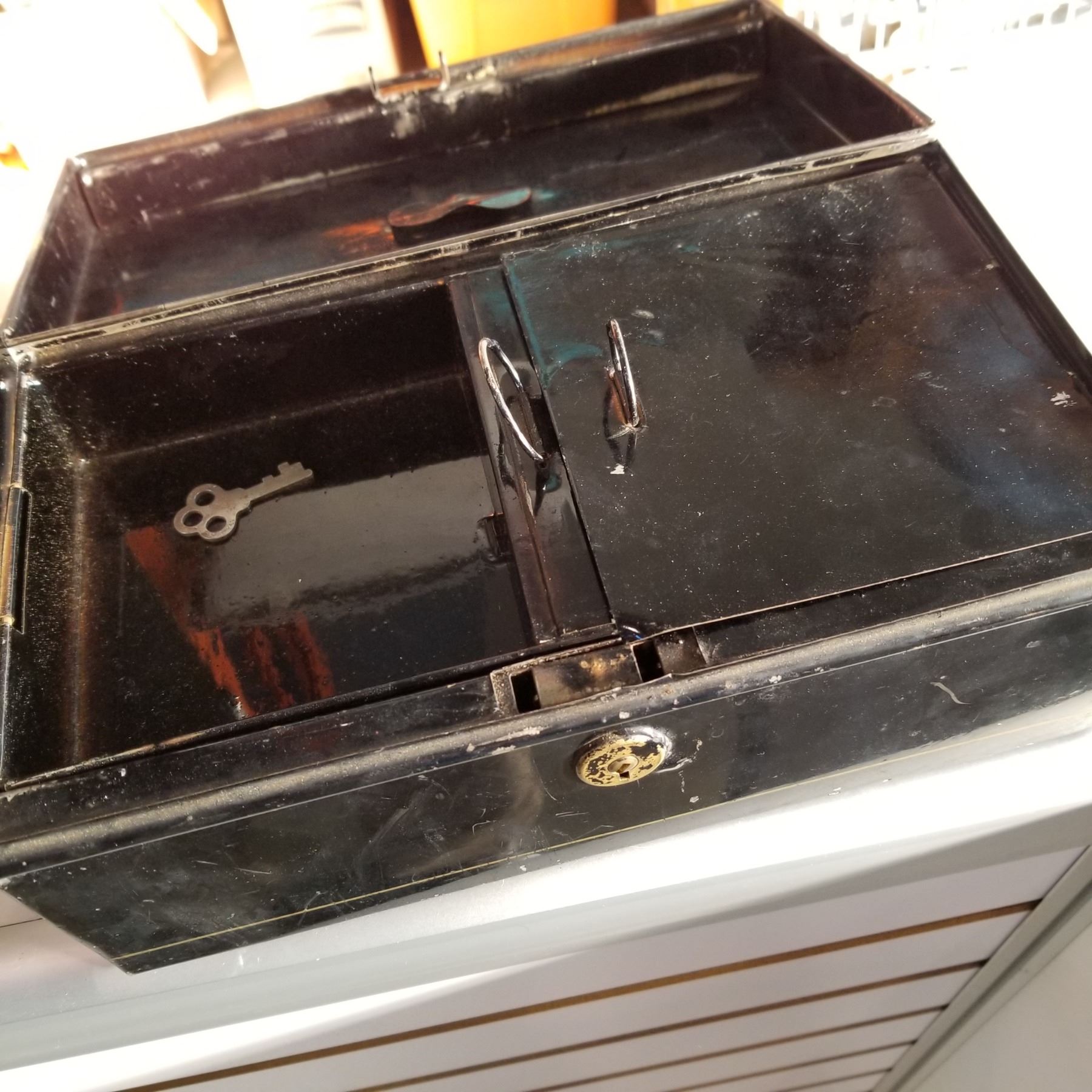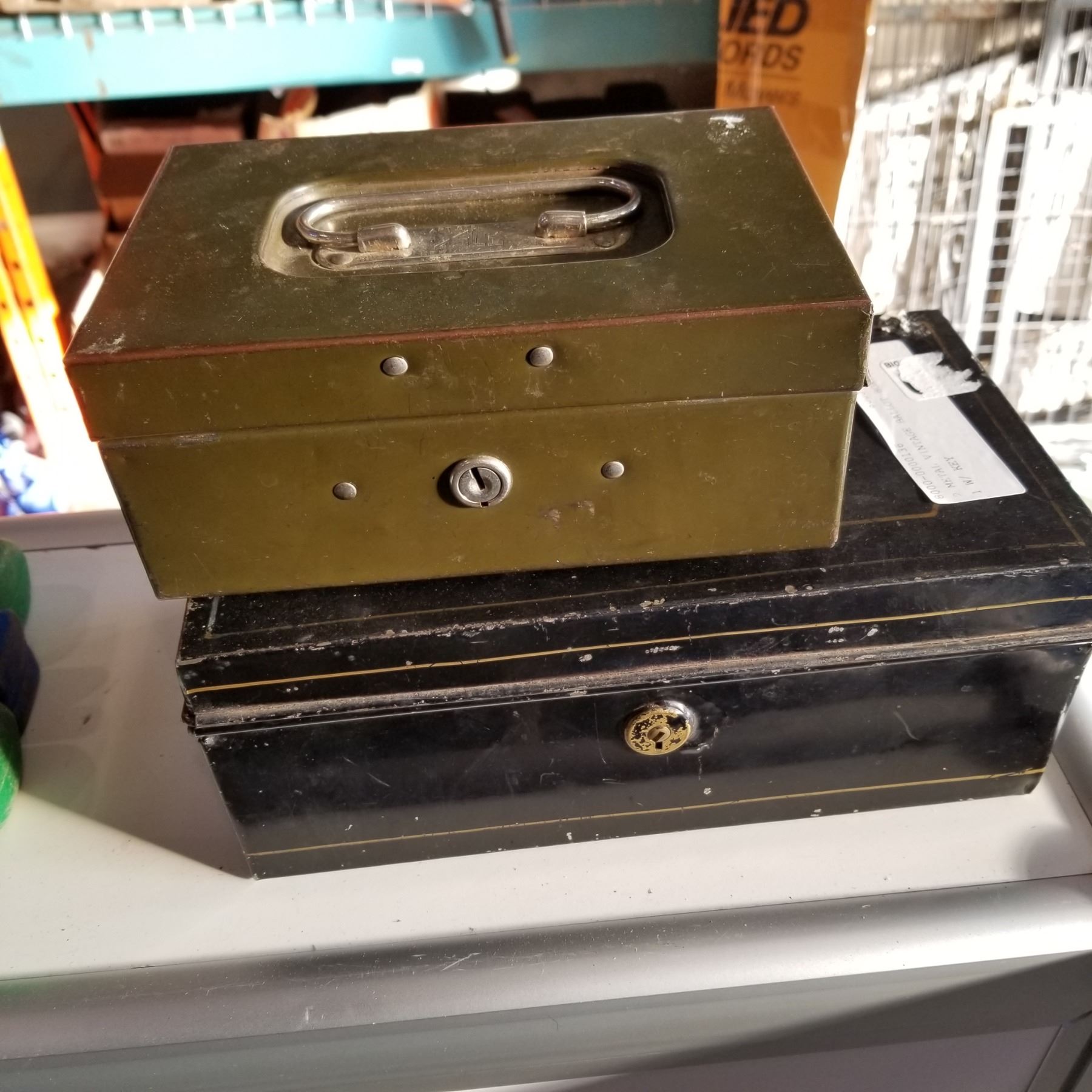 2 METAL VINTAGE BALLOT BOXES - 1 W/ KEY
