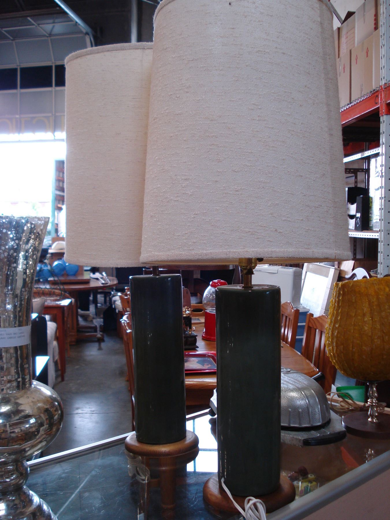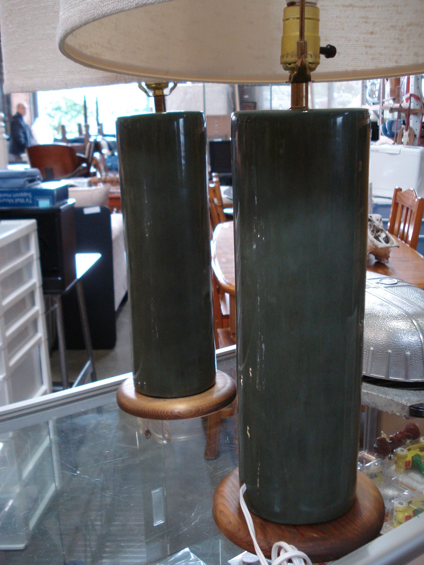 2 MID CENTURY TEAK BASE TABLE LAMPS