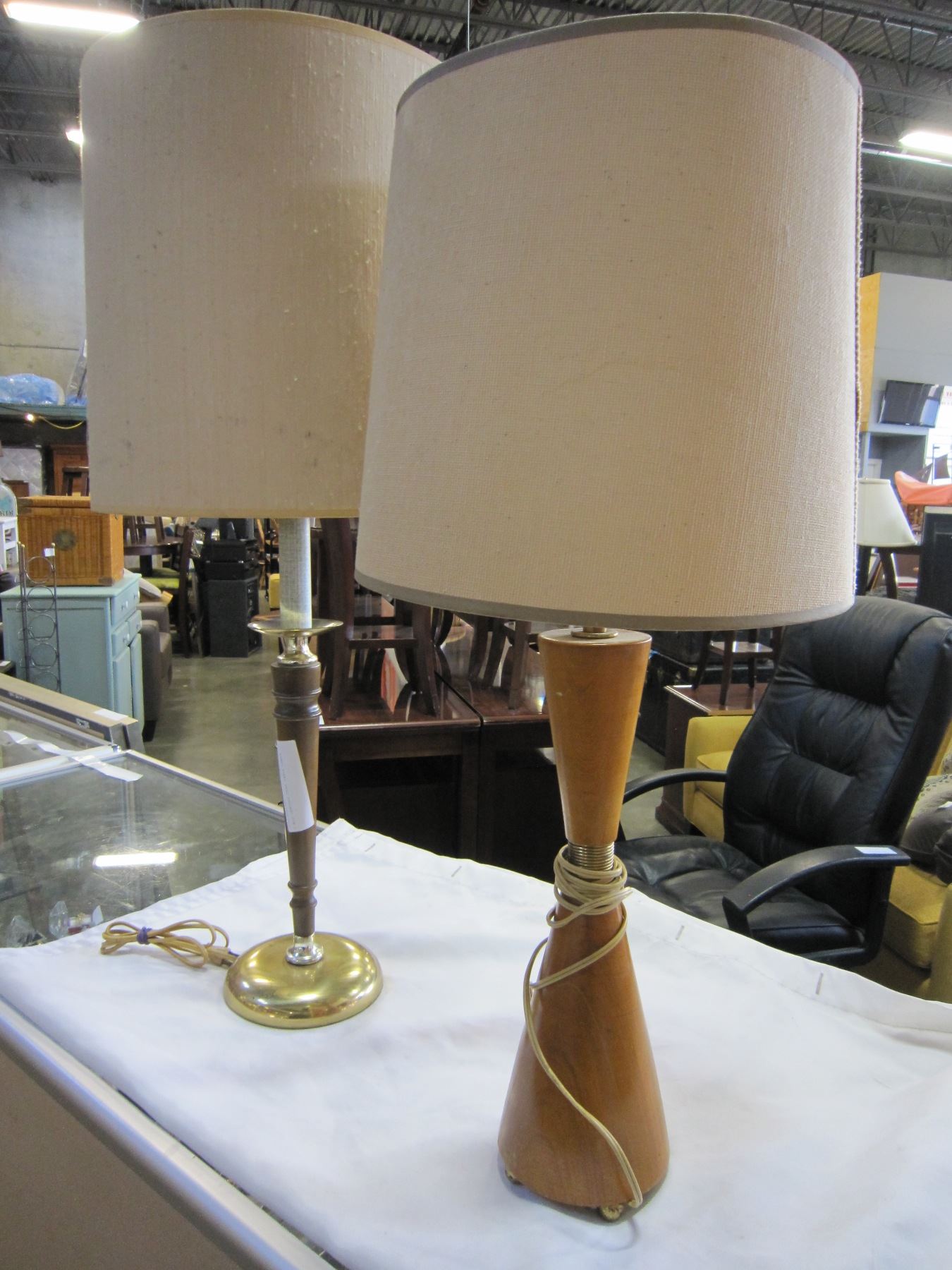 2 MID CENTURY TEAK TABLE LAMPS