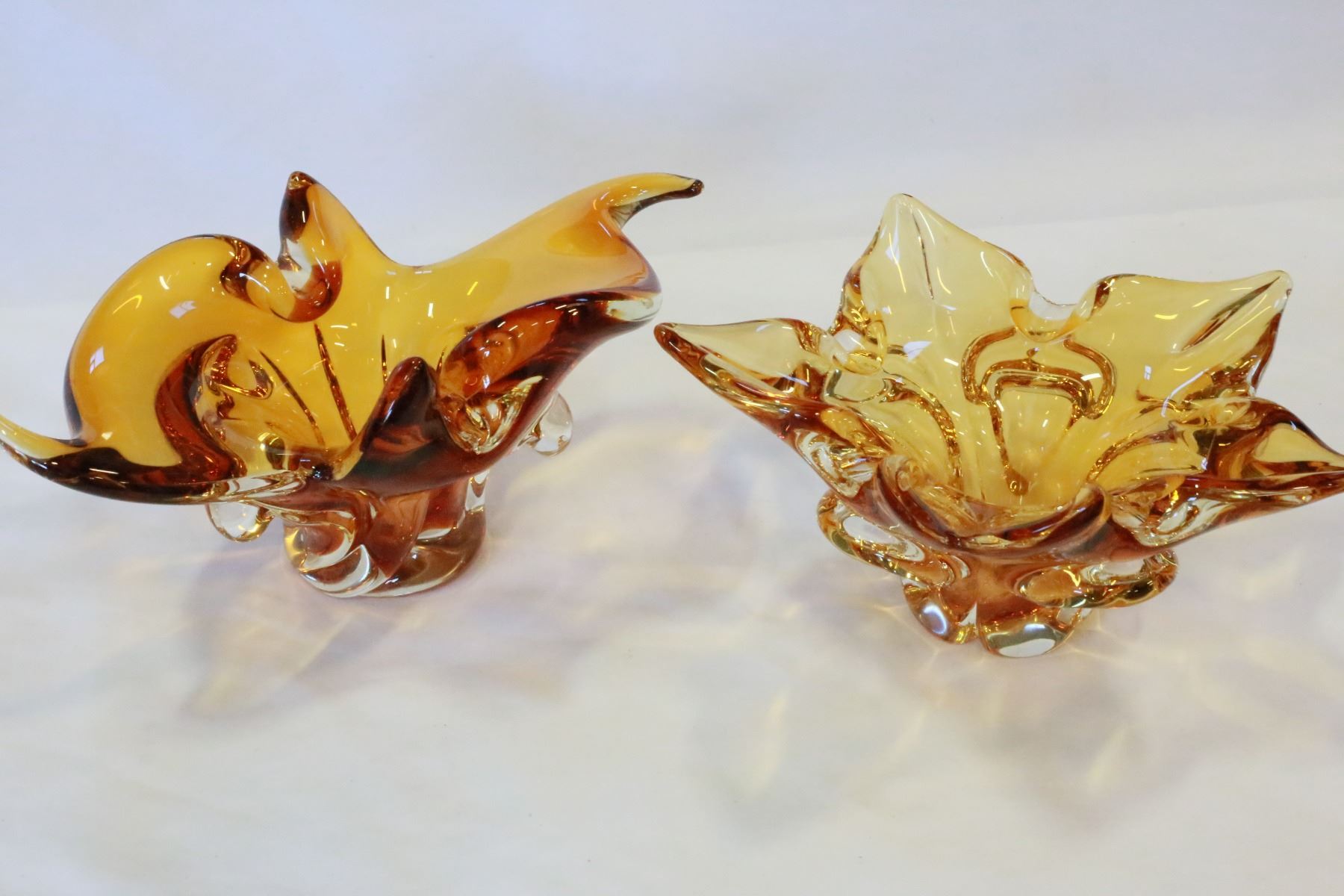 2 MID CENTURY YELLOW ARTGLASS BOWLS
