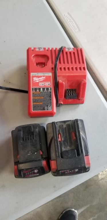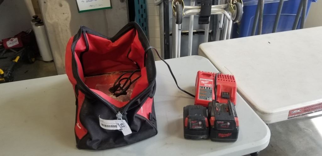 2 MILWAUKEE 18V BATTERIES, CHARGER AND BAG