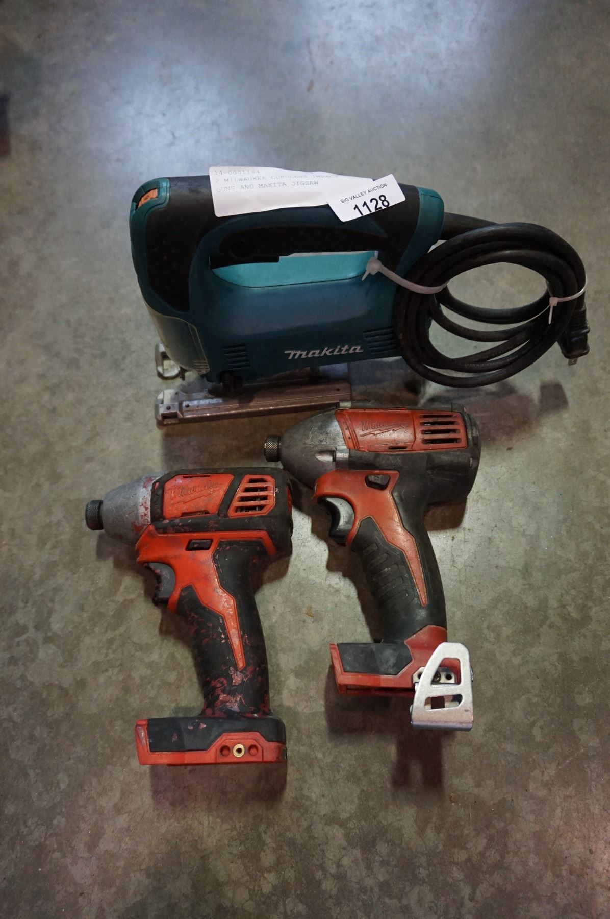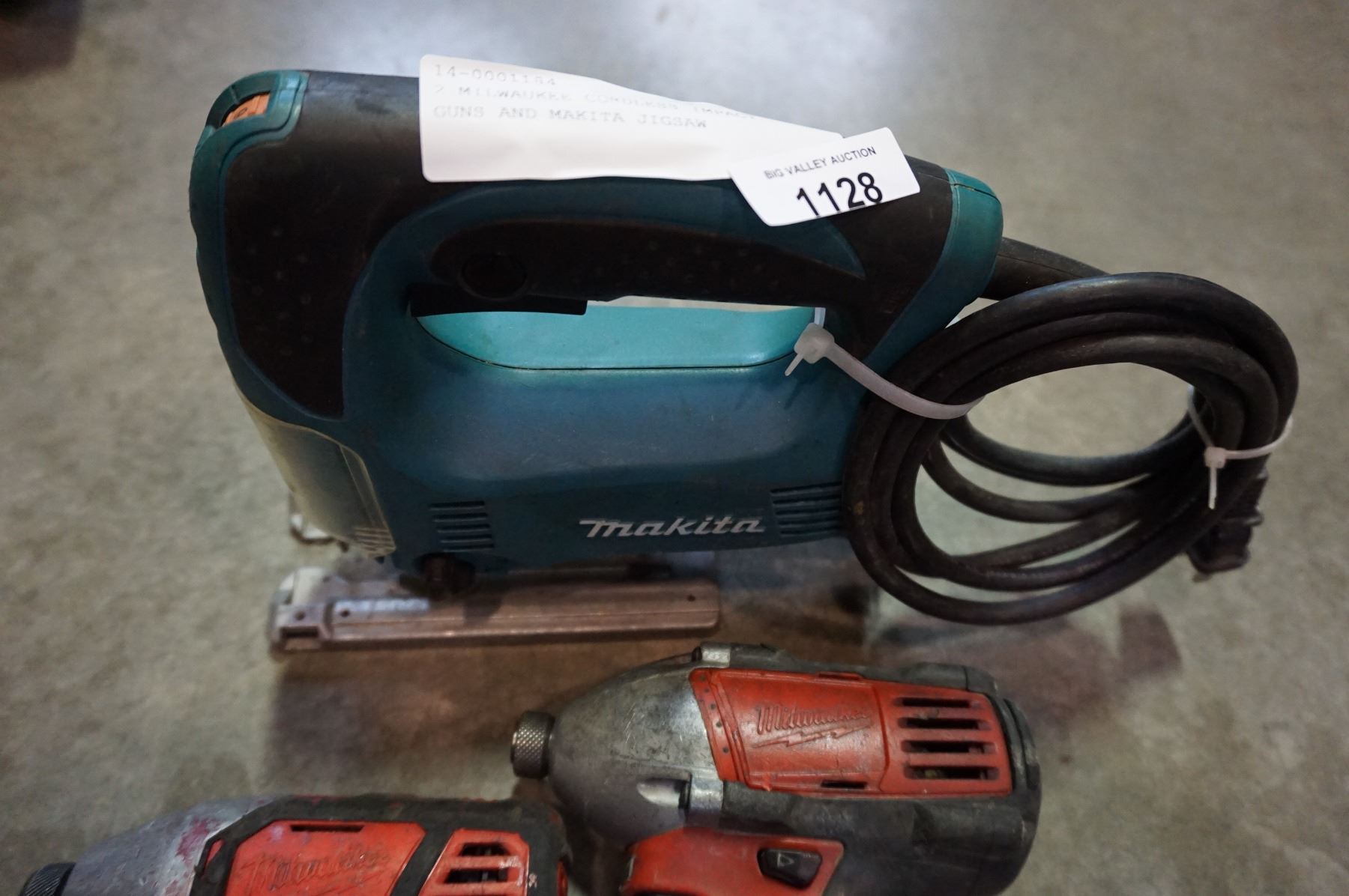 2 MILWAUKEE CORDLESS IMPACT GUNS AND MAKITA JIGSAW