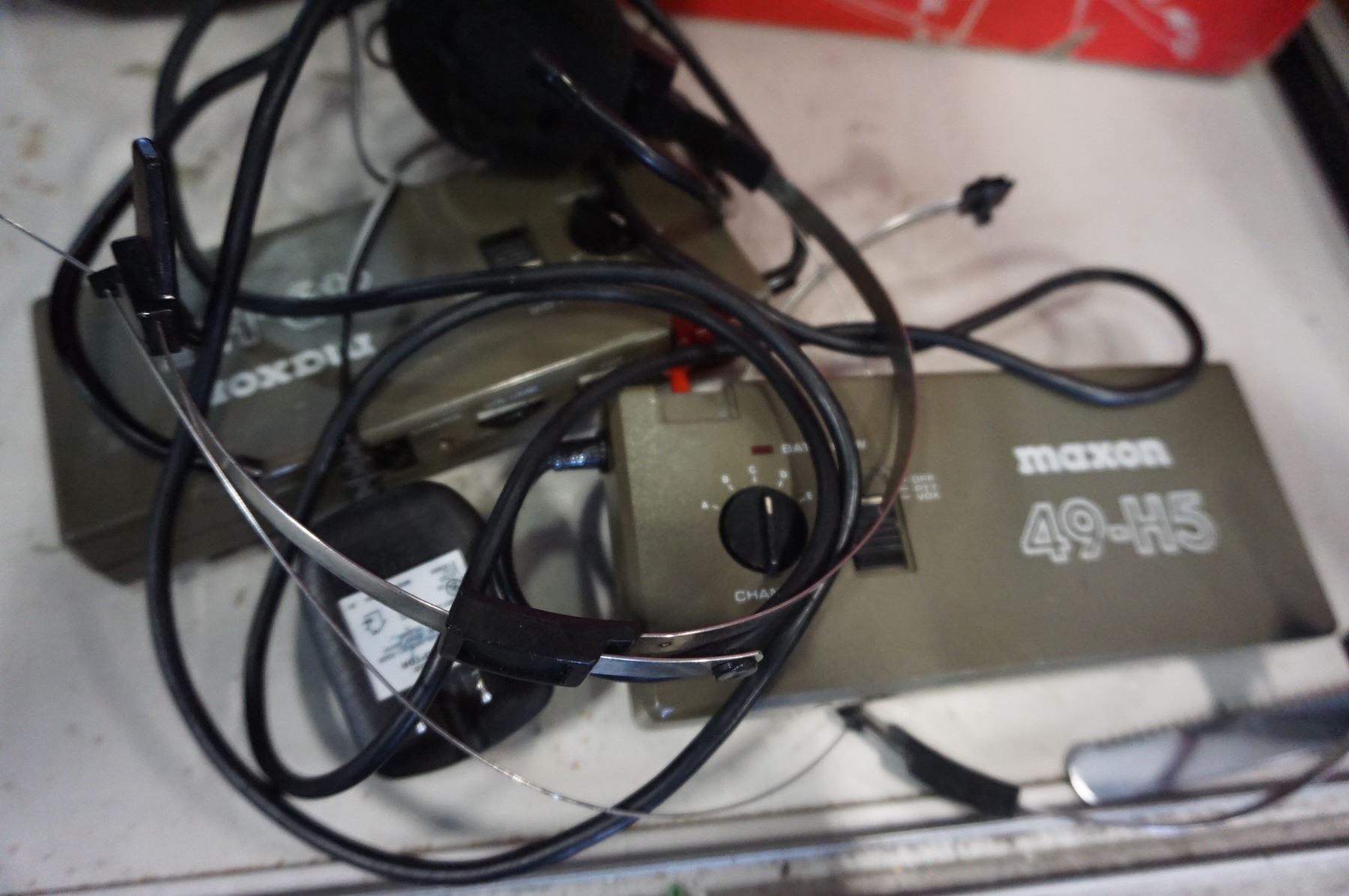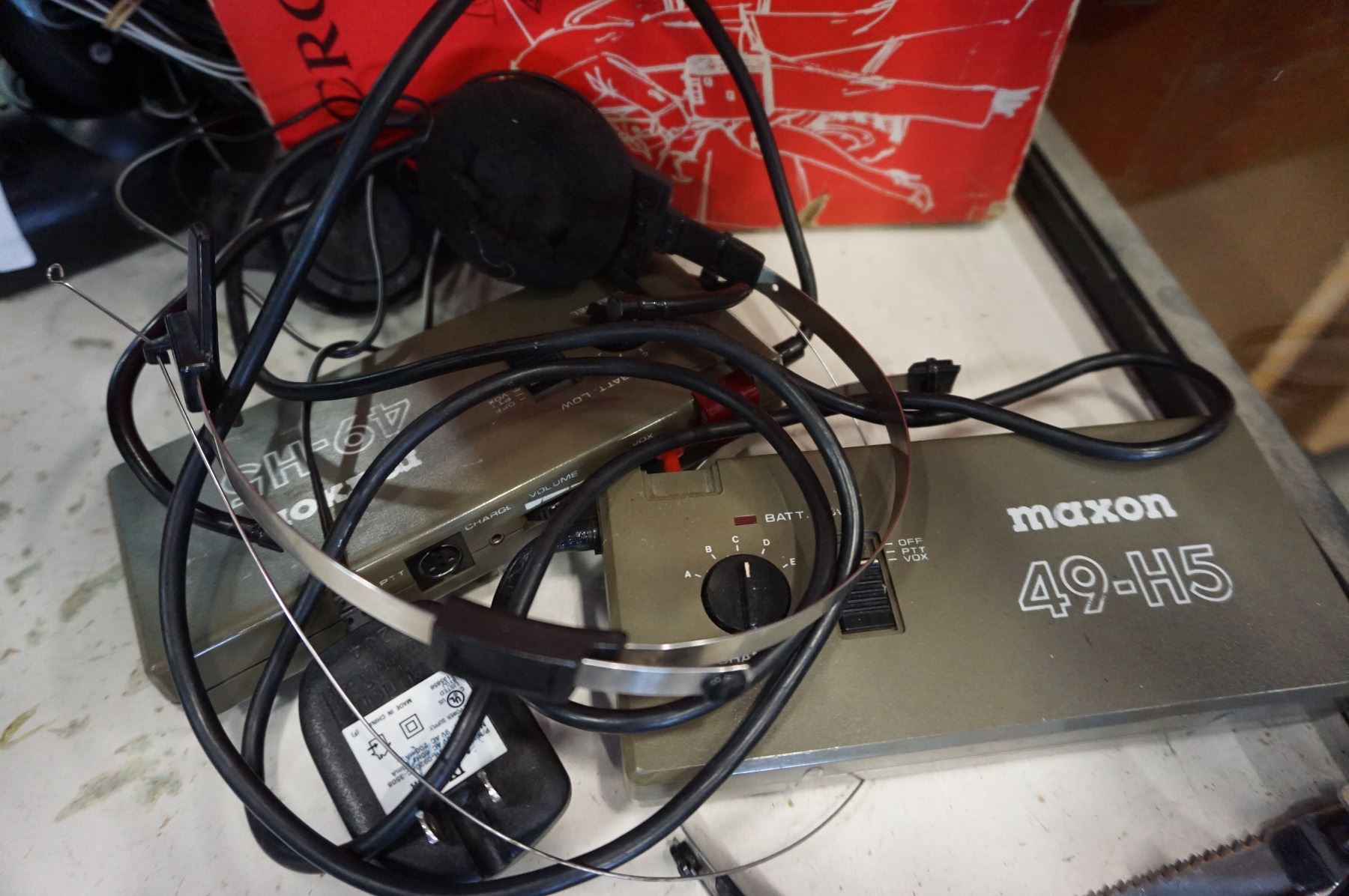 2 MOTOROLA WALKIE TALKIES AND 2 MAXON 49-H5 COMMUNICATORS