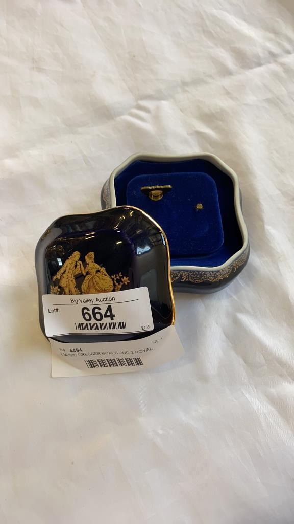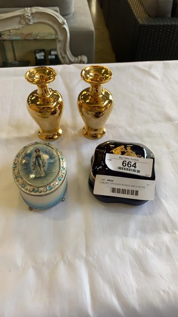 2 MUSIC DRESSER BOXES AND 2 ROYAL WINTON VASES