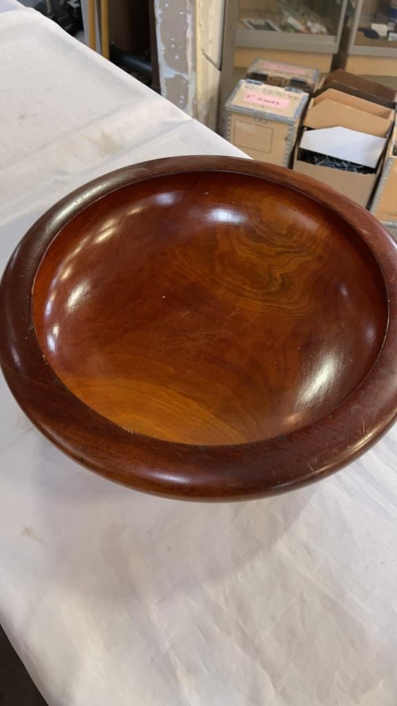 2 NATIVE CARVINGS, FIGURE, SIGNED TILE, AND WOODEN BOWL