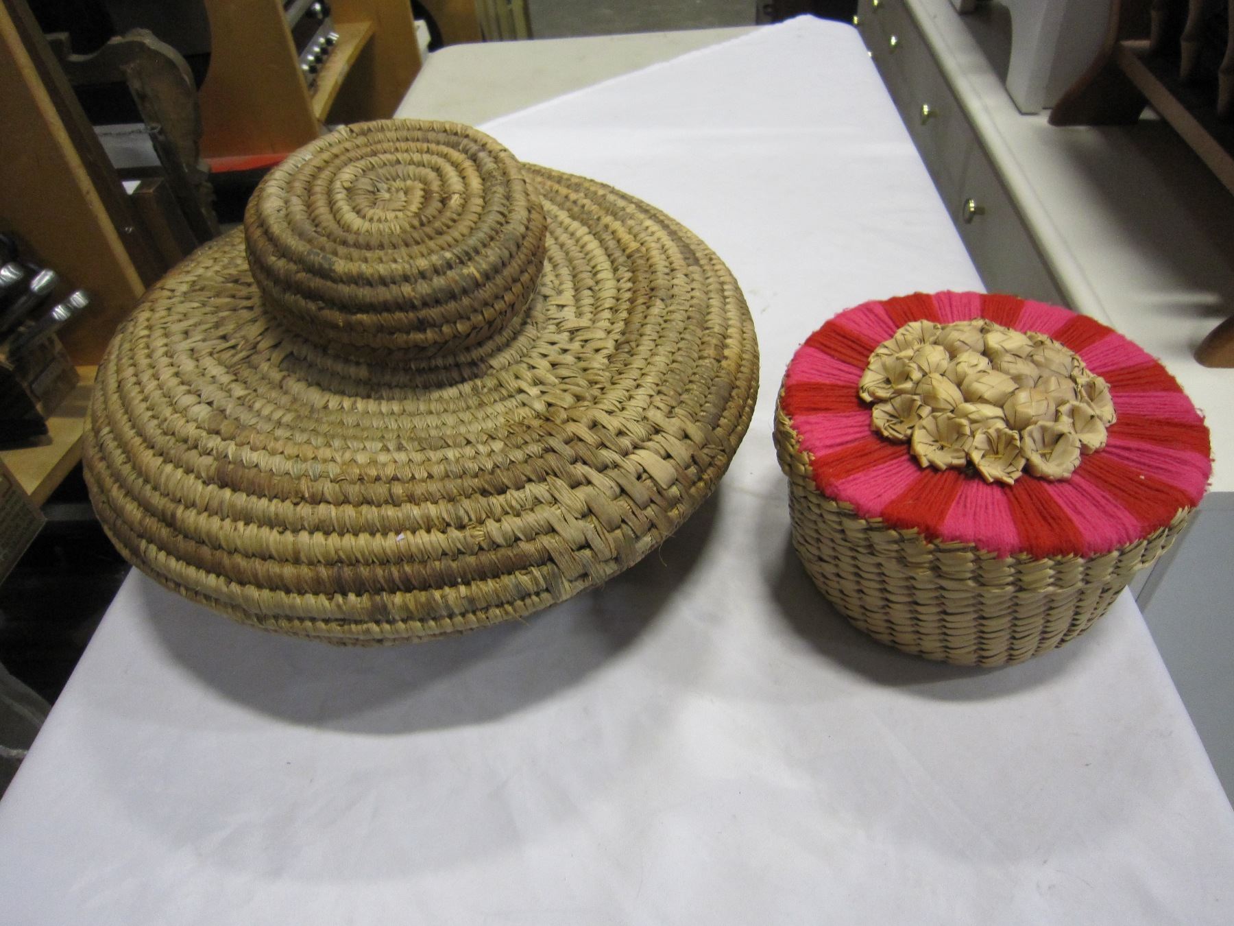 2 NATIVE WOVEN BASKETS W/ LIDS