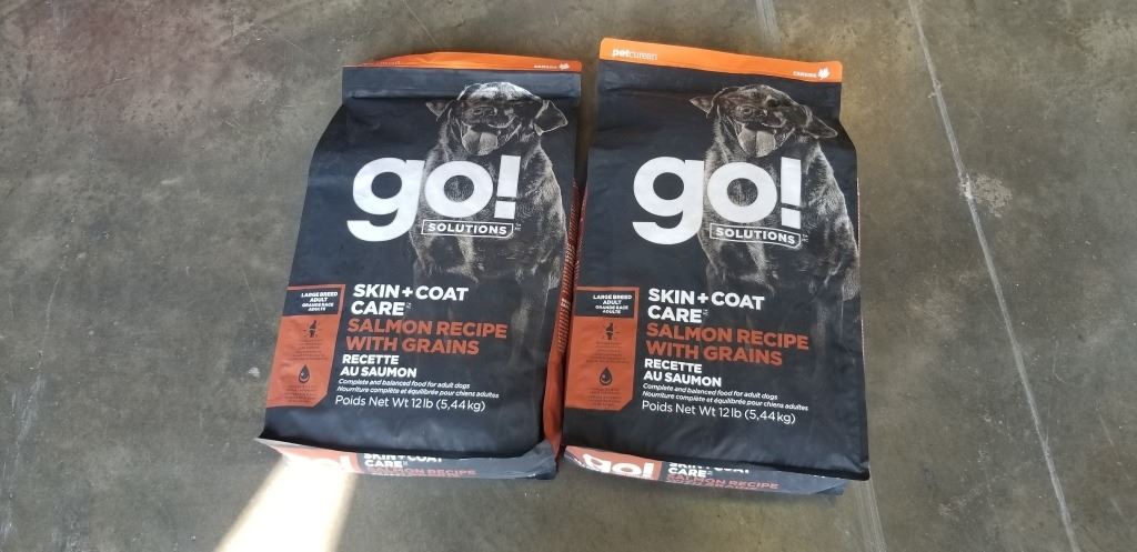 2 NEW 12LB BAGS OF GO! SOLUTIONS SALMON DOG FOOD BEST BEFORE 07/12/24