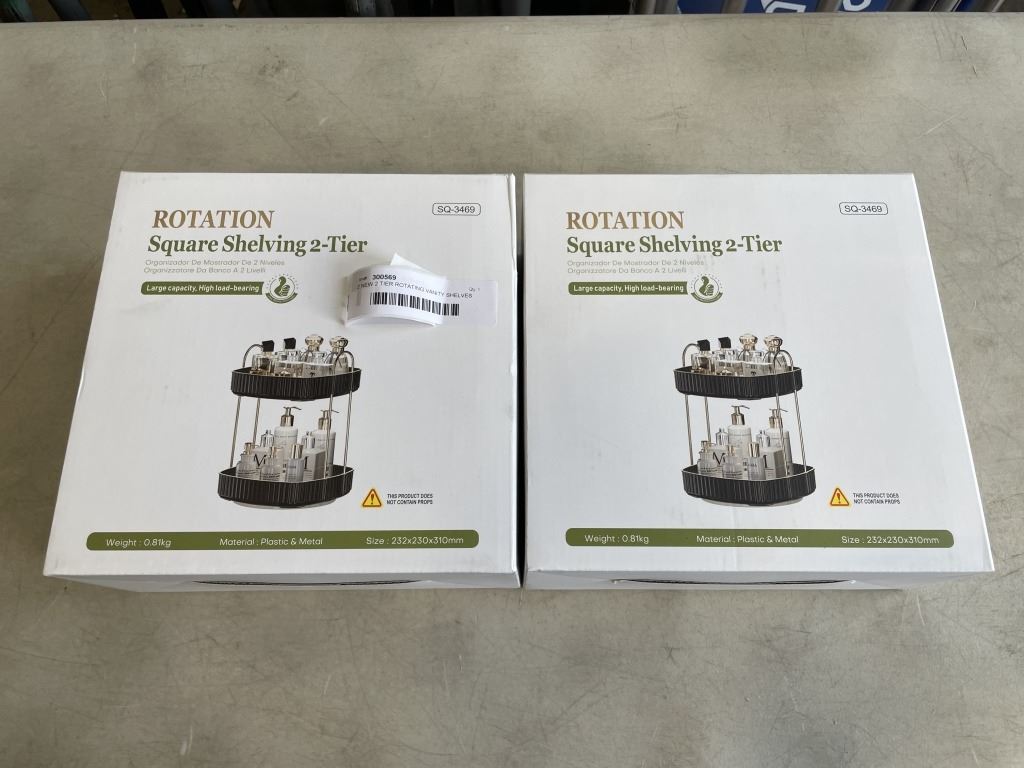 2 NEW 2 TIER ROTATING VANITY SHELVES