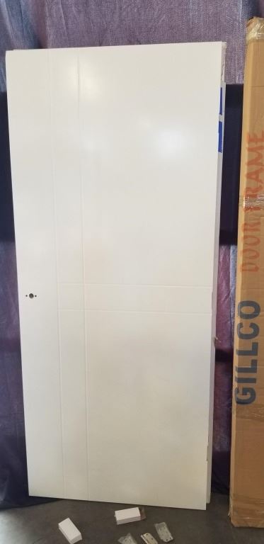 2 NEW 34" MODERN WHITE INTERIOR DOORS WITH DOOR FRAMES "36 WITH FRAME, HINGES INCLUDED, OVER $150 RETAIL PER DOOR, SMOOTH FINISH, NO PAINT REQUIRED, PRE DRILLED AND ROUTERED